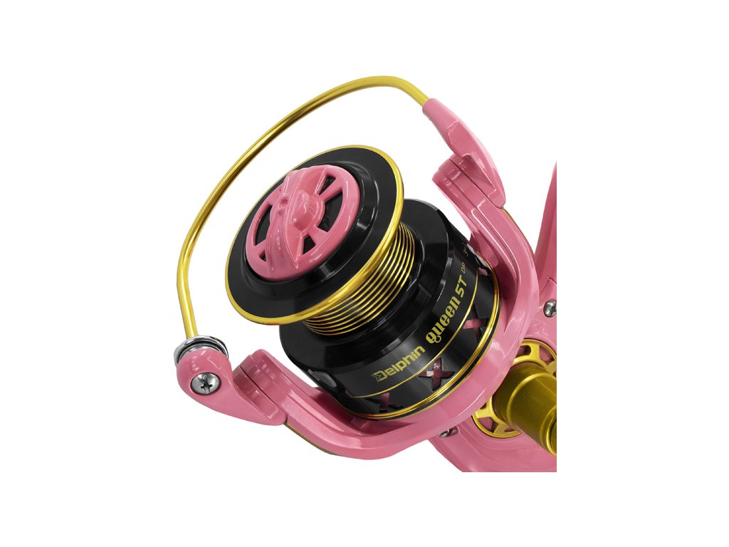 Univerzální naviják s volnoběžnou brzdou, který se díky svým technickým parametrům a nabízeným velikostem výborně hodí k lovu různých druhů kaprovitých a jiných ryb, ať už na těžko nebo feeder. Svým designem je speciálně určen pro něžnější pohlaví a dokonale ladí se sérií produktů z řady QUEEN. Základem navijáku je pevné ale lehké tělo z mimořádně odolného, tvrzeného ABS plastu, který bez problémů odolá i velké zátěži. Plynulý a hladký chod zajišťuje propracovaný vnitřní mechanismus s vyváženým rotorem a soustavou 3+1 kuličkových ložisek. Převodový poměr 5.2:1 umožní rychlé stahování montáže i bezproblémové zdolávání ryb. Pro pohodlnou manipulaci jsme naviják osadili kovovou kličkou s masivním pogumovaným madlem, které perfektně sedne mezi prsty. Citlivá volnoběžná brzda vám umožní přesné nastavení brzdné síly při záběru což nepochybně ocení množství příznivců tohoto systému. Během zdolávání ryb vám zase excelentně poslouží přední brzda, umožňující dokonalé dávkování brzdné síly podle potřeby. Samozřejmostí je hluboká kovová cívka, která disponuje zkosenou odhozovou hranou, pro snazší odvíjení vlasce během nahazování. Svojí kapacitou pojme dostatečné množství vlasce potřebného při lovu na větší vzdálenosti a to zejména u velikostí 6T a 7T. Cívka je navíc opatřena kovovým klipem, umožňujícím zaklipování vlasce za účelem co nejpřesnějších hodů na vaše krmné místo. V případě potřeby jsou k dispozici samostatně dokoupitelné hluboké i mělké náhradní cívky. Technické parametry: Model: Delphin QUEEN 5T Kapacita hluboké cívky mm/m: 0.25/300, 0.28/240, 0.30/205 Kapacita mělké cívky mm/m: 0.25/150, 0.28/120, 0.30/105 Převodový poměr: 5.2:1 Počet ložisek: 3+1 Hmotnost: 377g Model: Delphin QUEEN 6T Kapacita hluboké cívky mm/m: 0.25/430, 0.28/340, 0.30/300 Kapacita mělké cívky mm/m: 0.25/240, 0.28/190, 0.30/170 Převodový poměr: 5.2:1 Počet ložisek: 3+1 Hmotnost: 501g Model: Delphin QUEEN 7T Kapacita hluboké cívky mm/m: 0.25/490, 0.28/390, 0.30/350 Kapacita mělké cívky mm/m: 0.25/340, 0.28/275, 0.30/240 Převodový poměr: 5.2:1 Počet ložisek: 3+1 Hmotnost: 526g