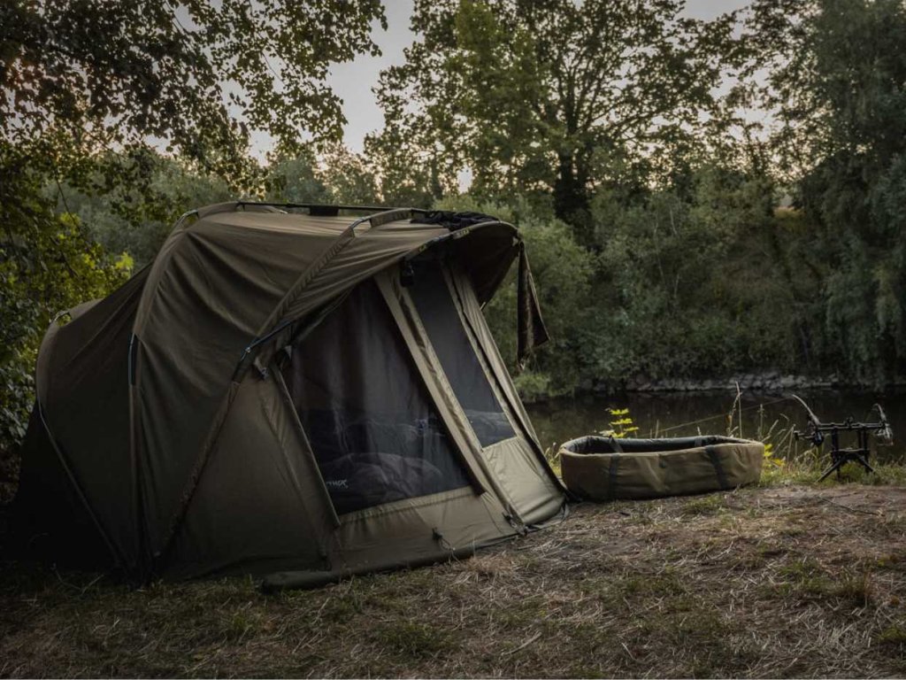 Díky svým obřím rozměrům, je bivak určen pro dva až tři rybáře. Při našem testování se do bivaku snadno vešla tři osminohá lehátka.