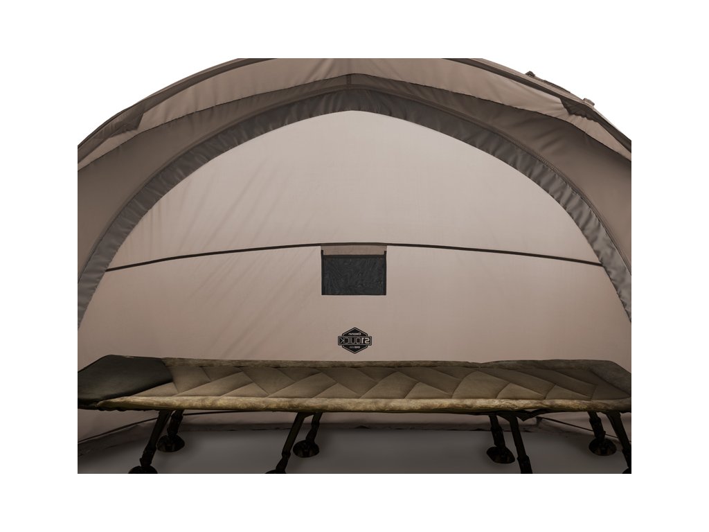 Vzhledem k požadavkům rybářů, kteří nemají dostatek času na dlouhé výpravy a upřednostňují spíše rychlé akce na jednu noc, přináší společnost Delphin na trh tento výjimečný a neuvěřitelně praktický „mini bivak“. Jeho podstata spočívá v takzvané „pop-up“ konstrukci, díky které jej lze extrémně rychle a bez námahy rozložit a složit. To je nespornou devizou u krátkých, rychlých vycházek, kde není zcela pohodlné nosit a rozkládat velký bivak. To ovšem není vše, co se týká výhod tohoto produktu. Jednou z nich je také rozměr bivaku a tvar ve složeném stavu. To jej umožňuje přepravovat vložený například ve složeném lehátku, díky čemuž nezabere prostor navíc a v případě potřeby tak bude pro vás mnohem snazší přenášení věcí na vzdálená, nedostupná místa. Přístřešek byl navržen rozměrově tak, aby se do něj vešlo jedno lehátko, přičemž stále zůstane prostor pro tašky, stolek a jiné potřebné příslušenství. Ve srovnání s jinými konkurenčními modely tohoto typu, má ten náš výrazný náskok díky větší hloubce, což znamená více místa pro vás a vaši výbavu. Přesto je velmi kompaktní a jeho rozměry tedy umožňují rozložit váš „camp“ i na velmi malých, těžko přístupných zarostlých místech. Jednoduše řečeno, všude tam, kde dokážete postavit lehátko, což by s velkým bivakem garážové konstrukce v mnoha případech možné nebylo. Vzhledem k tomu budete schopni pohodlně lovit na málo prochytávaných částech revíru a budete tak vždy o krok vpřed před ostatními rybáři. Navzdory svým kompaktním rozměrům překvapí po zakolíkování výbornou stabilitou a bez problémů snese i silnější vítr. Přední panel je osazen čtyřmi zipy, kterými je možno přizpůsobit si vchod, případně větrání podle potřeby. Také disponuje mosketeriovým oknem, díky kterému budete mít vždy přehled o tom, co se na vašem lovném místě děje. Na stropě bivaku je umístěn praktický háček, určený k zavěšení například lampy, případně bundy a podobně. Kapsa na zadní stěně zase umožňuje uschovat mobil, klíče, příposlech, které tak máte vždy po ruce. Pokud tedy patříte do skupiny rybářů, kteří rádi loví na hůře dostupných místech, případně upřednostňujete krátké rybaření, tak Delphin S1Quick se pro vás stane neocenitelným pomocníkem. Podlaha není součástí balení. Technické parametry: Celkové rozměry: 240x180x120cm Transportní rozměry: 75x75x10cm Hmotnost: 3kg