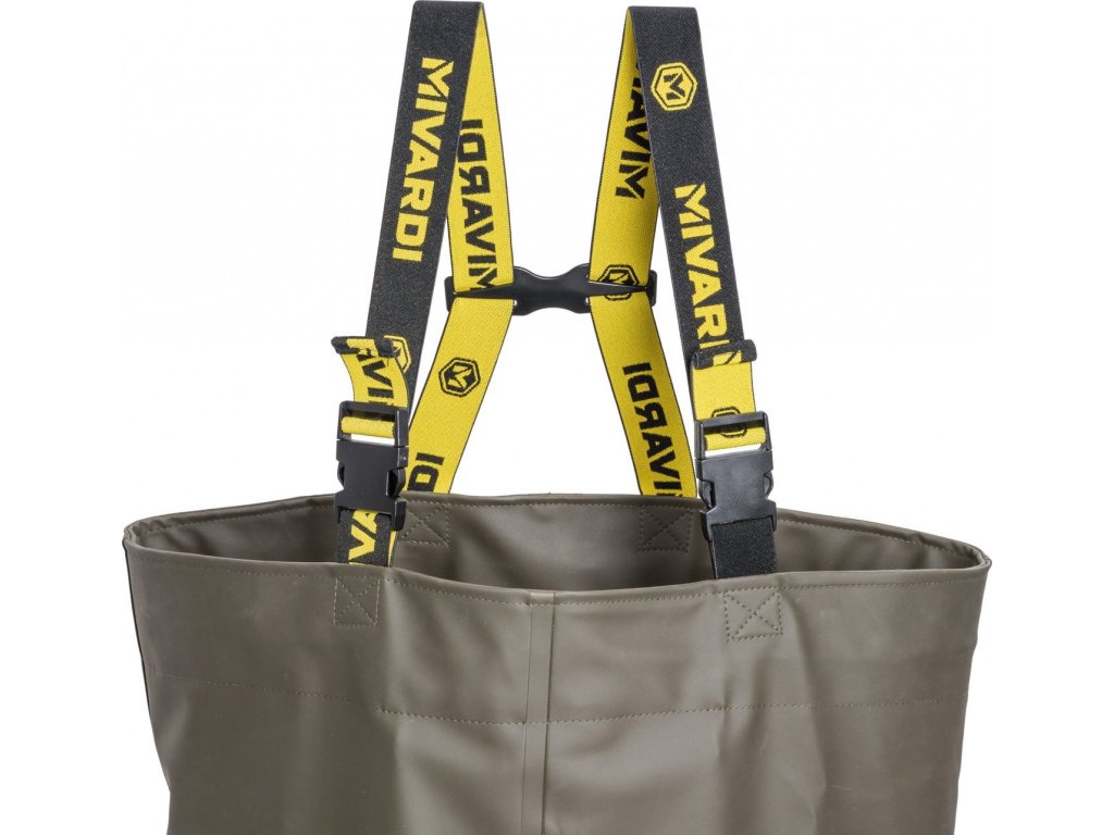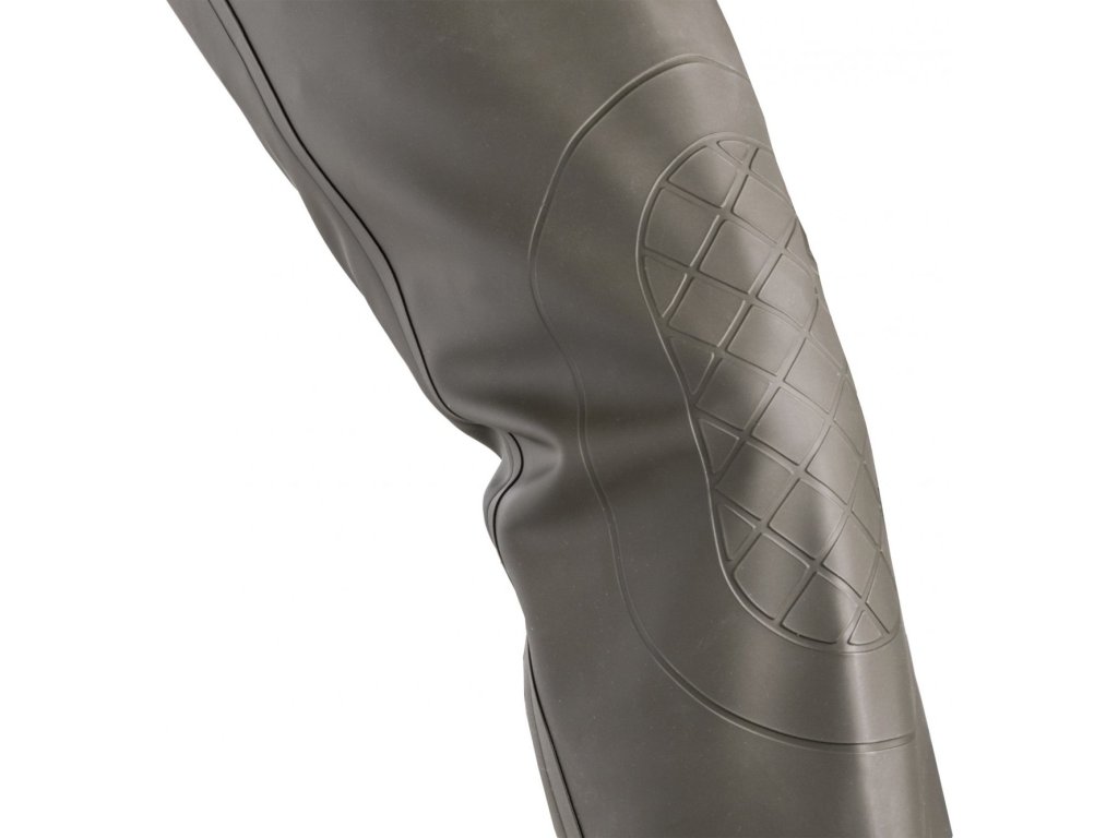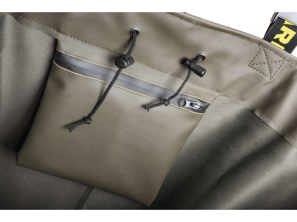 Prémiové broďáky vyrobené z prvotřídního PVC s odolnou polyesterovou podšívkou — navržené tak, aby obstály i v těch nejnáročnějších podmínkách a nabídly maximální životnost. Materiál je měkký, mírně pružný a mimořádně pohodlný, což zajišťuje maximální volnost pohybu. Robustní boty jsou vybaveny protiskluzovou podrážkou a speciálně tvarovanou patou s hlubokými výstupky pro snadné a rychlé vyzouvání. Všechny švy jsou pečlivě zatavené a zajišťují 100% vodotěsnost. Zesílené oblasti na kolenou poskytují dodatečnou ochranu bez objemných vnějších záplat, které by se mohly časem uvolnit. Tyto broďáky spojují funkčnost a komfort — nechybí nastavitelná stahovací šňůrka, vodotěsná vnitřní kapsa s utěsněným zipem a pohodlné kšandy s tkaným logem. Dodávají se v kvalitním přepravním obalu s pevnými popruhy odolnými vůči vlhkosti i nečistotám — připraveny vyrazit kamkoli, kam vás zavede vaše dobrodružství.