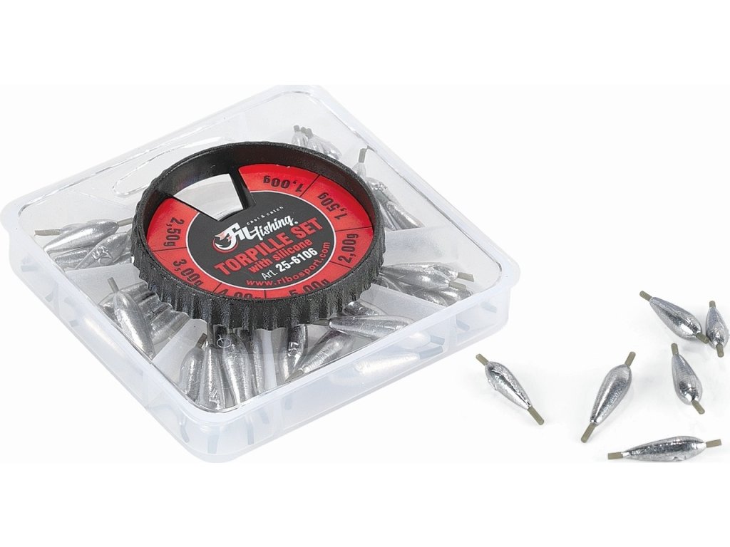 Kvalitní olověné torpily s vodící silikonovou hadičkou vhodné především na plavanou. Tato praktická sada obsahuje 7 velikostí/hmotností torpil od 1 do 5g, které jsou samozřejmě roztříděny a vloženy do praktické krabičky. Celkově tak získáte velice užitečnou a univerzální sadu torpil.
