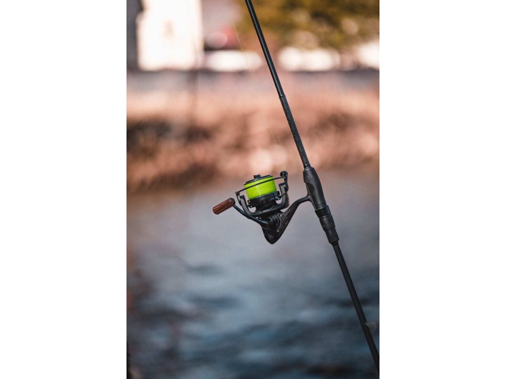 Moderní a ergonomické sedlo navijáku, která skvěle sedne do ruky. Rukojeť s protiskluzovým povrchem a zakončená rozšířenou koncovkou, díky níž máte prut naprosto pod kontrolou i při silných náhozech.