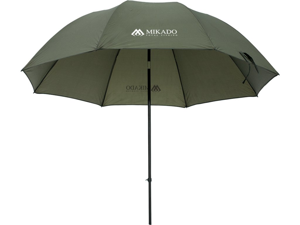 Standardní deštník s nastavitelným úhlem sklonu. Účinně chrání před sluncem a deštěm. Ostrý hrot zajišťuje stabilní umístění na lovišti, a velká střecha o průměru 250 cm poskytuje dostatek místa pro více rybářů.