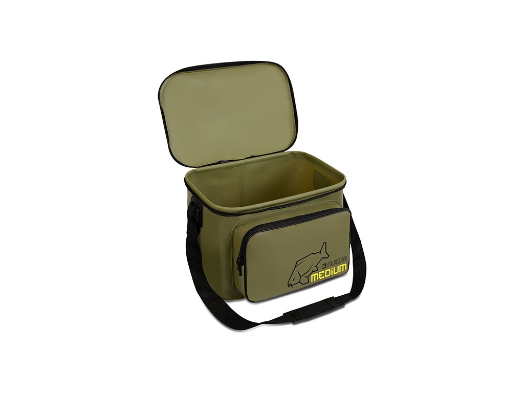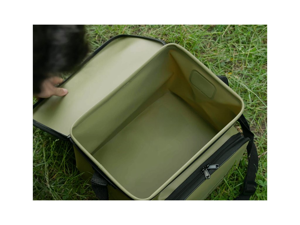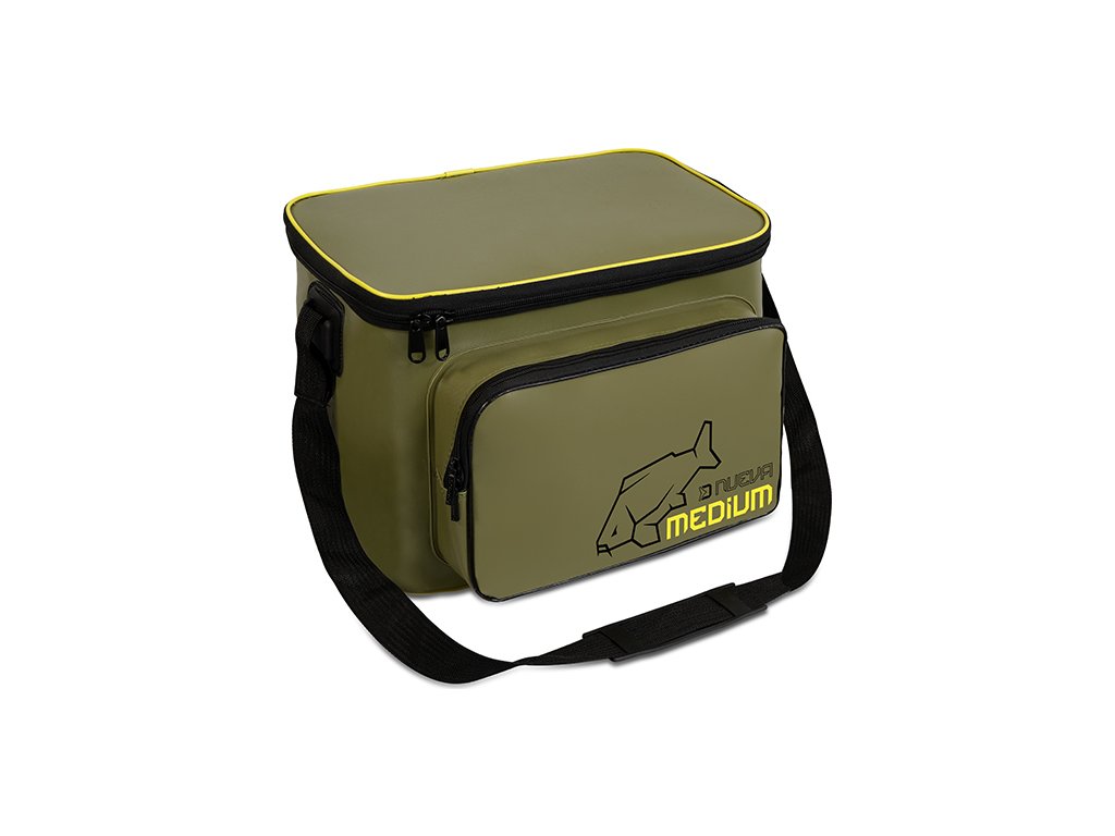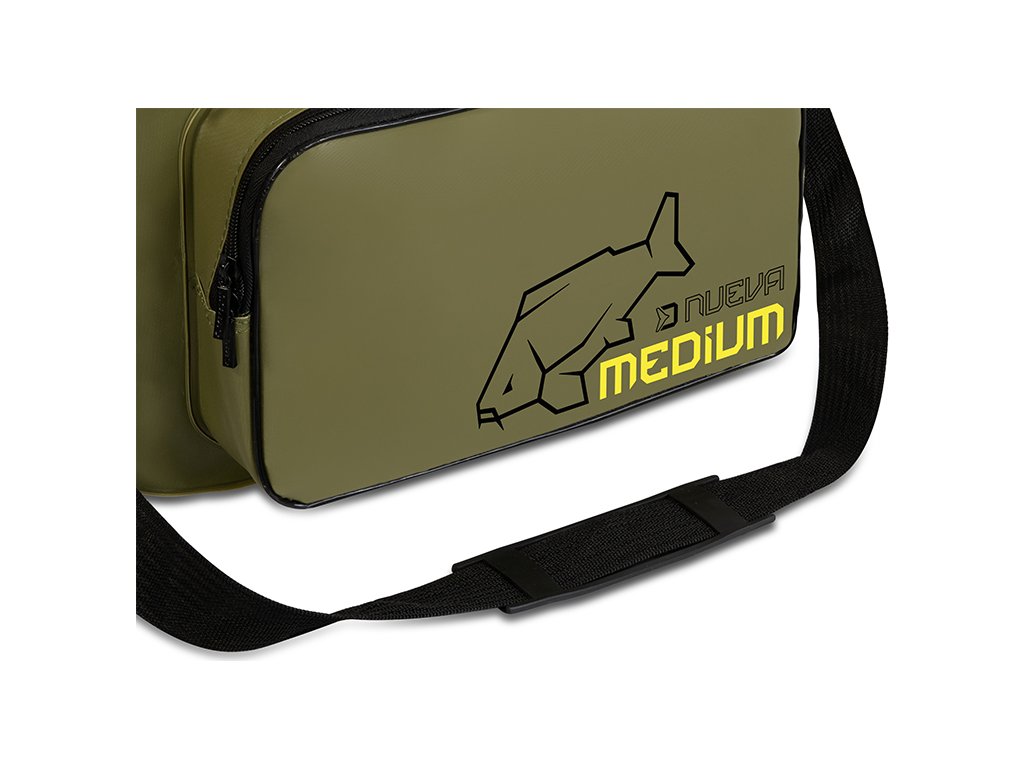 CarryAll taška Delphin NuEVA Medium o rozměrech 35x25x30cm je univerzální rybářská taška vyrobená z EVA materiálu, která poskytuje dostatečný prostor pro uskladnění nejrůznějšího rybářského vybavení či různých nástrah a návnad. Díky použitému EVA materiálu a kvalitním svárům je taška nepromokavá, čímž dokonale ochrání obsah uvnitř i v nepříznivých povětrnostních podmínkách. Kromě nepromokavosti je tento materiál také velmi snadno omyvatelný a neabsorbuje pachy. Bez obav tak uvnitř můžete přenášet také různé tekuté potravy, dipy či boostry. Extra prostor pro drobnější příslušenství poskytuje zipovatelná kapsa na přední straně. Série tašek NuEVA je designována v kombinaci decentní barvy s logem kapra, což potěší množství příznivců kaprařiny. Pro snadný transport je taška opatřena praktickým, délkově nastavitelným popruhem na rameno. Rozměr: 35x25x30cm Rozměr přední kapsa: 30x20x6cm