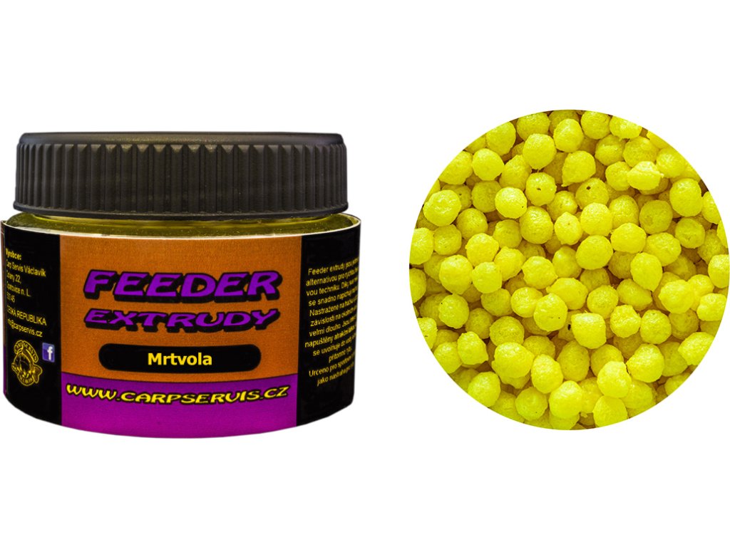 Feeder extrudy jsou speciálně připravenou nástrahou pro akční feeederové chytání. Cílem bylo vytvoření malé nástrahy s rychlým nástupem účinnosti a dlouhodobou trvanlivosti na háčku. Tyto extrudy mají elastickou konzistenci a obsah jejich atrakčních látek je enormní. Ryby na ně reagují prakticky okamžitě.