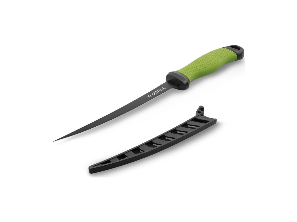 Staňte se šéfkuchařem na rybách či při pobytu v přírodě s vysoce kvalitním filetovacím nožem Delphin SCALE. Ostrá čepel z nerezavějící oceli umožňuje precizní a efektivní zpracování masa, ryb, zeleniny a jiných surovin bez zbytečné námahy. Zúženou špičku a pružnost čepele oceníte zejména při filetování či vykosťování a speciální tvar čepele zase při krájení a porcování. Čepel z vysoce kvalitní oceli si zachovává vysokou ostrost i při mnohonásobném používání. Nůž je opatřen měkkou a velmi příjemnou ergonomickou rukojetí s protiskluzovým povrchem, který navíc připomíná tvar šupin, což nepochybně potěší množství rybářů. Čepel je chráněna ochranný plastovým pouzdrem pro bezpečné skladování a transport. Délka nože: 32cm Délka čepele: 17,5cm