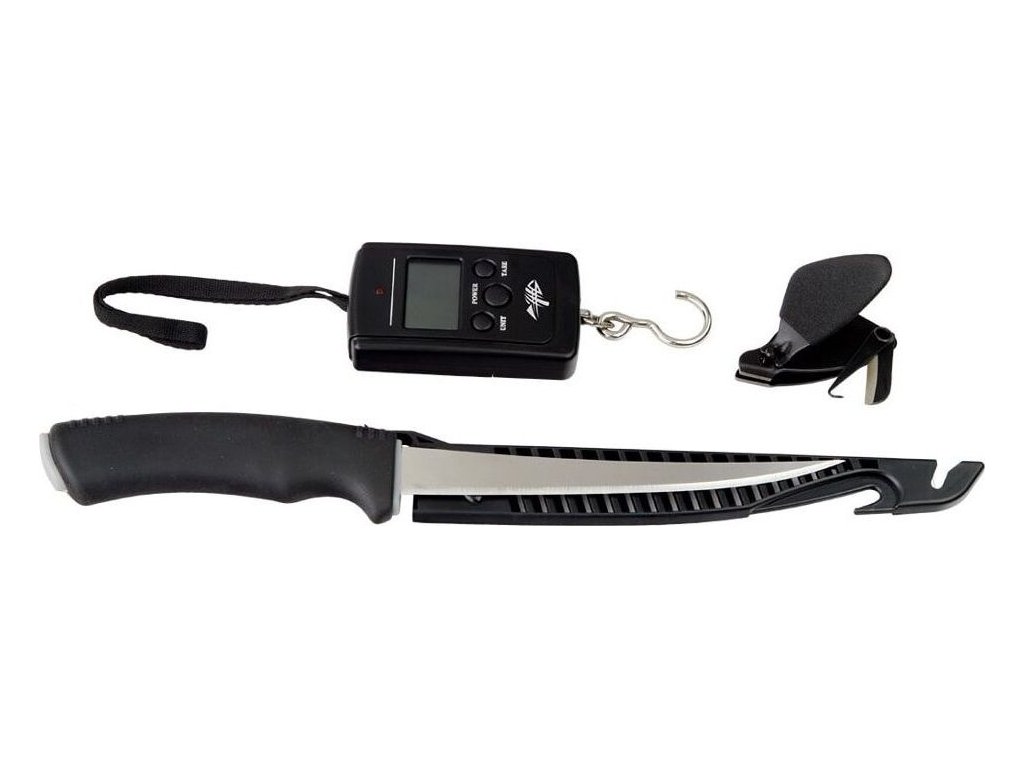 Super zaváděcí cena této kvalitní sady 3v1! – Obsahuje digitální váhu do 40kg, cvakátko vlasce a filetovací nůž s pouzdrem.