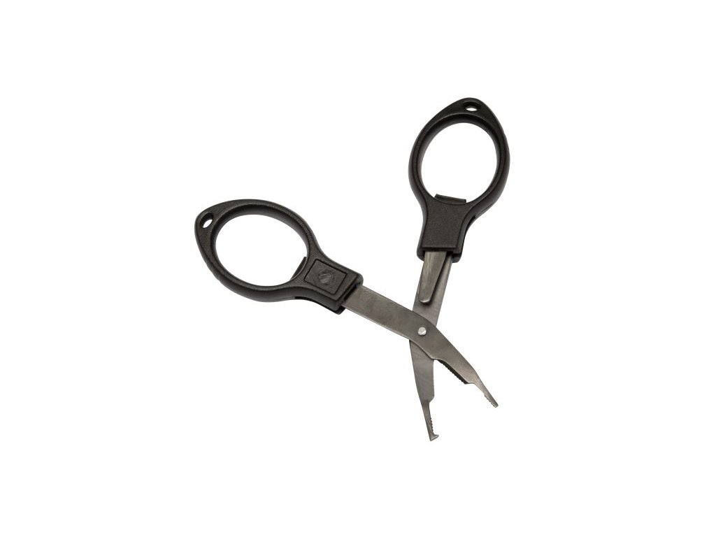 Vroubkované nůžky s miniaturním otvírákem kroužků.