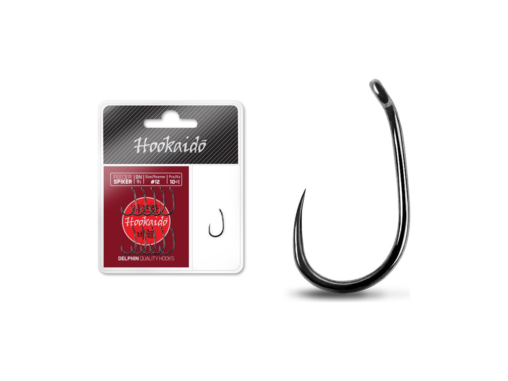 Háčky červené série Delphin HOOKAIDO jsou určeny pro každodenní rybolov. Jsou velmi odolné, ostrost a tvar neztrácejí ani po delším používání a mnoha zdolaných rybách. Vyrobeny jsou jen z materiálů vysoké jakosti. Díky pestrosti tvarů a velikostí si z této série vybere každý rybář ten svůj! Asymetrické balení 10+1 umožňuje rybářům snadnější výběr potřebného háčku. Delphin HKD Feeder SPIKER je tvarově oblíbeným háčkem, který je vhodný zejména pro lov menších ryb, ať už feedrovou, nebo jinou jemnou technikou. Háček disponuje očkem, což umožňuje prezentaci nástrahy mimo háček, ale také přímo na něm. SPIKER není opatřen protihrotem, díky čemuž je k rybám velmi šetrný. Technické parametry: - s očkem - bez protihrotu - průřez: kulatý