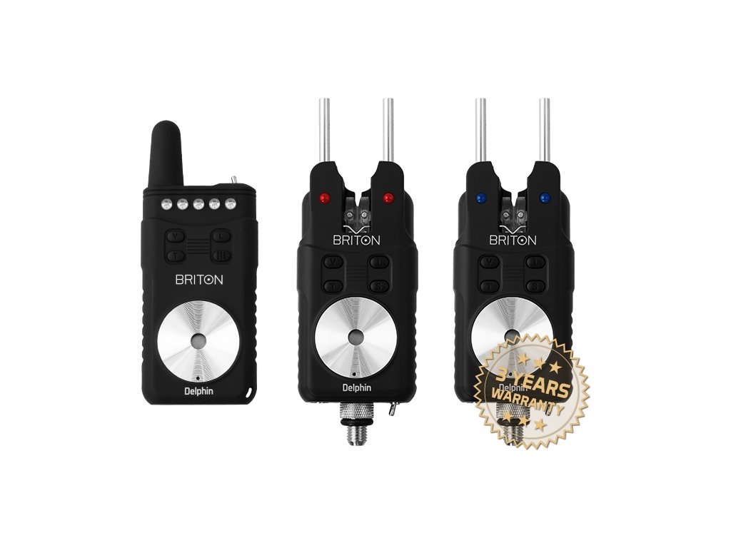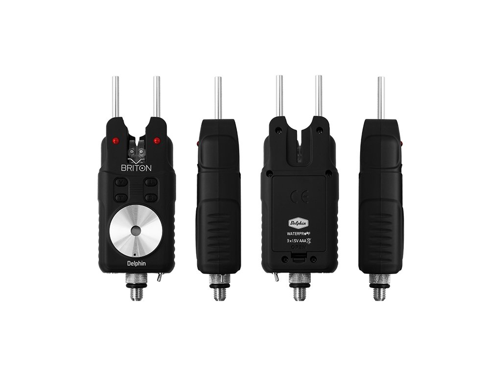 Excelentně zpracovaná sada, která je promyšlená do nejmenšího detailu. Už na první pohled vás osloví minimalistický design, který je nadčasový a který tuto sadu předurčuje k tomu, aby i po letech používání vypadala stále aktuální a neotřele. První dotek se sadou je také nadmíru pozitivní. Použité jsou díly bezchybného zpracování, všechny lícují, zpracování je na velmi vysoké úrovni a použité jsou ty nejkvalitnější materiály, včetně ušlechtile zpracovaných hliníkových krytů reproduktorů. Ty jsou jednoznačně tím nejsilnějším designovým prvkem této sady. Všechny plastové části jsou zase hodnotně pogumované, což evokuje dojem výrazně dražších sad. Komplikovaný přístup k bateriím přes neforemné kryty je minulostí. BRITON se vyznačuje velmi dobrým přístupem k napájení, a tím přispívá k velmi rychlému osazení baterií před lovem. Přijímač i signalizátor jsou oba shodně napájeny třemi kusy baterií typu AAA. BRITON navíc v dlouhodobých testech vynikal neskutečně dlouhou výdrží baterií a byl testován opravdu v těch nejextrémnějších výkyvech počasí (-25 ° C až + 35 ° C). Sada má v závislosti na podmínkách (okolní terén, hustota porostu, kapacita baterií) reálný dosah až přes 200m! Navíc díky speciálnímu tvarování těla a překrytí elektroniky i výbornou odolnost vůči vodě. Ani hustý déšť napříště nepřeruší spojení vašeho přijímače se signalizátory. Spuštění probíhá pomocí pákových přepínačů. To zaručí, že bez nejmenšího problému dokážete sadu ovládat i v naprosté tmě. Navíc je statisticky tento mechanismus mnohem méně náročný na poškození. U přijímače i signalizátoru máte na výběr až z 8 různých tónů a 8 různých úrovní hlasitosti (včetně tichého módu). U přijímače je samozřejmostí vibrační mód, indikace slabé baterie a uchovávání nastavení v paměti. Pro komfortnější přenos je grátis popruh na ruku. Signalizátor poskytuje možnost podsvícení rolničky, osazení tzv. uší (snag gears), 5 úrovní citlivosti (od 0.8 až po 4.0cm), indikaci slabé baterie a vstup pro 2.5mm jack. Také nastavení uchovává v paměti. Rolničku lze mechanicky zablokovat pomocí magnetu, a tím pádem sada při osazování na rodpod nesignalizuje falešné záběry. Při koupi kompletní sady dostáváte automaticky pevný kufřík a podrobný návod v několika jazycích. Už po prvním použití sady však budete nadšeni, jak jednoduše probíhá celé její ovládání. Za kvalitou sady Delphin BRITON si jednoznačně stojíme. I to je důvod, proč poskytujeme na tuto sadu záruku až 3 roky! Sada 2+1 obsahuje vždy modrý a červený signalizátor. Sada 3+1 obsahuje vždy modrý, červený a zelený signalizátor. Sada 4+1 obsahuje vždy modrý, červený, zelený a žlutý signalizátor.