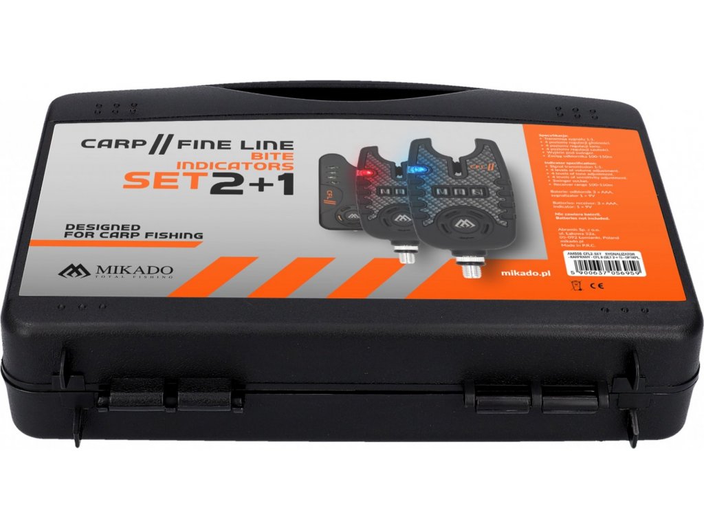 Sada hlásičů záběru "CARP FINE LINE" s regulací tónu, hlasitosti a citlivosti záběru. Garantovaná účinná vzdálenost práce příposlechu s možností nastavení vibrací je 150m ve volném prostoru. Zařízení je dodáváno v souladu se zákonem o el. zařízeních a vysílačích.