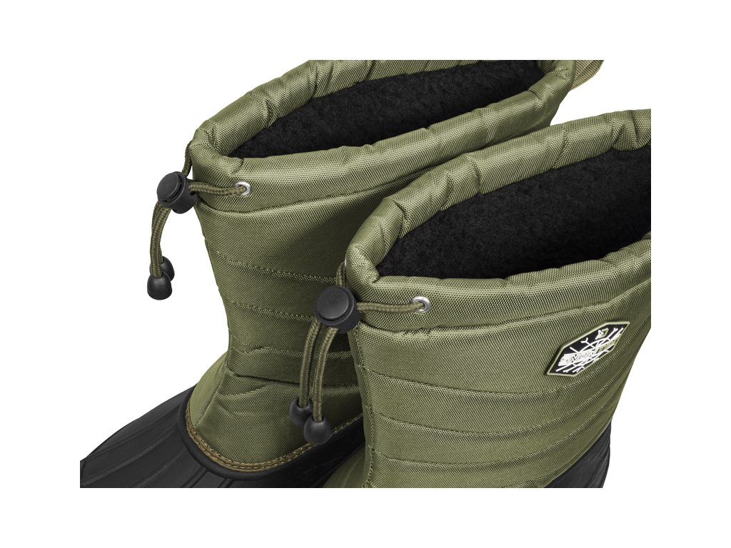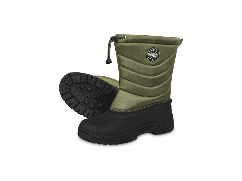 Vysoké zateplené boty SNOWTEX jsou ideální volbou do zimních zasněžených dnů, ale výborně poslouží i při sychravých, podzimních výpravách za rybami či při procházkách v přírodě. Zvýšený pryžový lem podrážky sahá až do výšky kotníků, to znamená, že vaše nohy zůstanou v suchu i během chůze v louži, rozbředlém sněhu či blátě. Pryžová část se navíc velmi dobře čistí a vzor na podrážce zajistí stabilitu i na kluzkých površích. Svršek boty je tvořen materiálem Oxford, který zajistí tepelný komfort i při extrémně nízkých teplotách. K tomu přispívá i na dotek velmi příjemný, fleecový materiál uvnitř boty a umělé mikrovlákno mezi vnější a vnitřní vrstvou. Takové provedení poskytuje pohodlí i při lovu na dírkách, kde se bota dostává do přímého kontaktu s ledem. Výška boty je navržena tak, aby zajistila odolnost vůči sněhu i při vydatné sněhové nadílce. Na vrchu boty se nachází lem s dotahovací šňůrkou, díky čemuž je nazouvání mnohem jednodušší a hlavně rychlejší. Černo-zelenou kombinaci materiálů ocení nejen rybáři, ale také myslivci, turisté a všichni ostatní milovníci přírody. I přes mohutnost bot jsou velmi lehké, což jistě přijde vhod při dlouhodobější chůzi nebo při celodenních vycházkách k vodě.