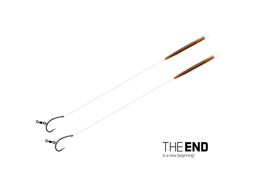 Hotový kaprařský návazec ze série THE END, na výrobu kterého byly použity komponenty nejvyšší kvality. Je určen zejména k dokonalé prezentaci neutrálně vyvážené nástrahy. „balansky“, ale také se výborně hodí při použití takzvaného panáčka, tedy kombinace potápěvé nástrahy s plovoucí. Je vyroben z fluorokarbonu, čímž se stává velmi chytlavý a téměř vždy se po nasátí kaprem zapíchne do jeho tlamy. Díky transparentnosti fluorokarbonu a použité kamuflážové gumičky proti zamotání dokonale splyne s vodním prostředím a umožňuje tak odprezentovat nástrahu maximálně nenápadně. Rovněž disponuje Mustad háčkem, což je zárukou mimořádné kvality, pevnosti a ostrosti. Jednoduše dokonalá zbraň na opatrné kapry!!! Návazec je složen z následujících komponent: - Delphin THORN Shanker #6 #4 / by Mustad - Delphin FLR Carbon / 100% 0,35mm - Tvrdá gumička proti zamotání THE END - Obratlík #10