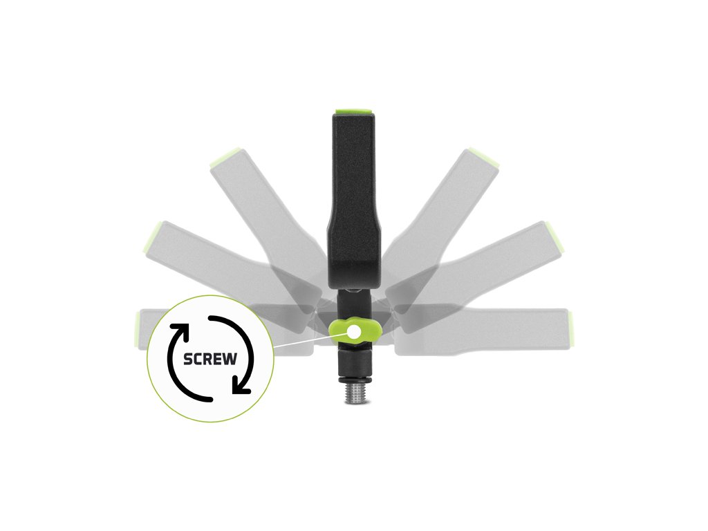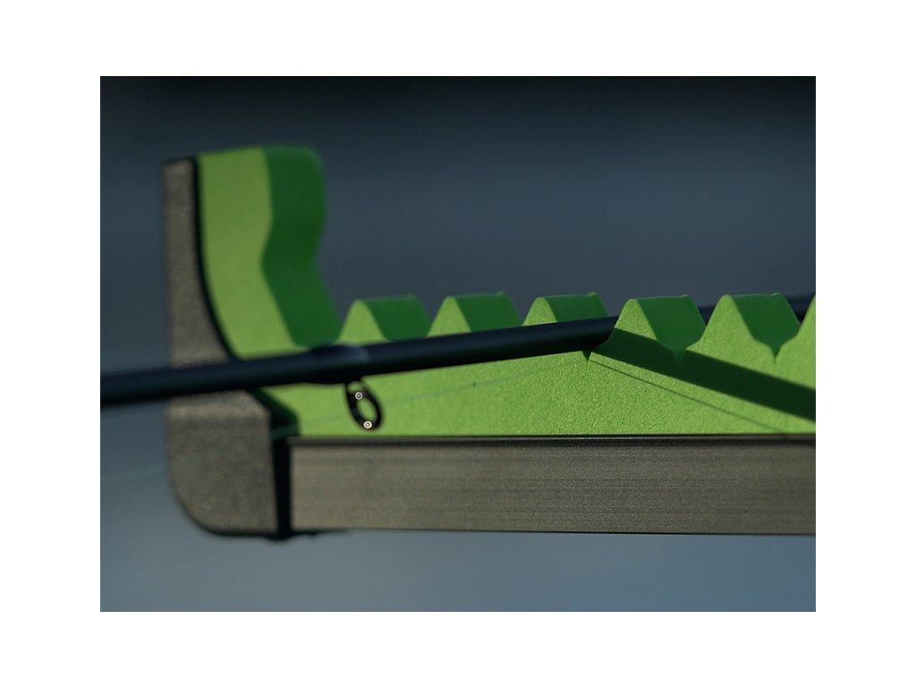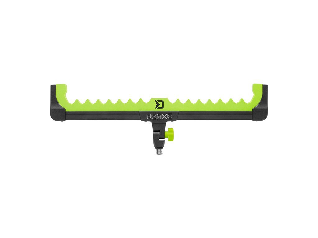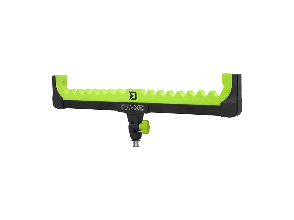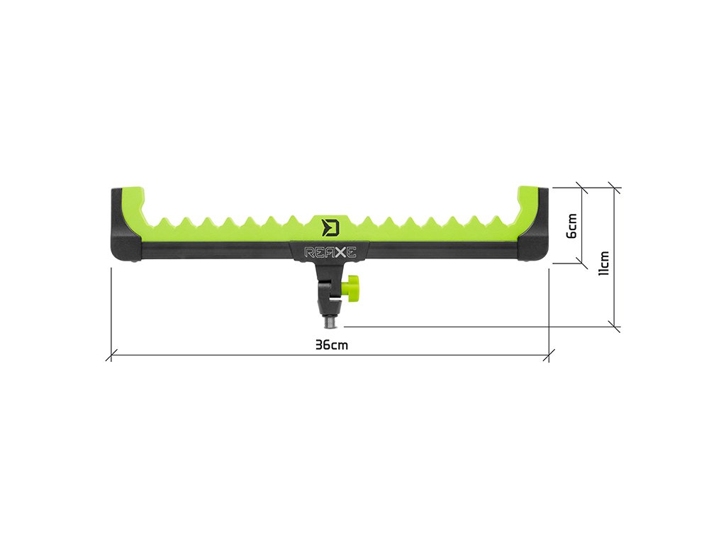 Praktický a variabilní přední feederový držák na pruty, nabízející skvělý poměr kvality a ceny. Je vyhotoven z EVA pěny vsazené v lehkém hliníkovém rámu, která obsahuje 16 speciálně tvarovaných výřezů pro prut s vlascem a tudíž nabízí možnost měnit jeho polohu pro zvýšení nebo snížení napětí na špičce. Držák je zároveň dostatečně dlouhý, což umožňuje použití dvou prutů najednou. Ve spodní části je na rám připevněn plastový kloub s otočným regulátorem, poskytující možnost polohování držáku v různých úhlech dle vašich potřeb a dle podmínek u vody. EvaFRONT disponuje také univerzálním závitem kompatibilním s většinou vidliček, feederových držáků a ramen. Barevně je držák laděn do černo-zelena a tím skvěle zapadne mezi ostatní produkty z řady REAXE. Technické parametry: Délka: 36cm