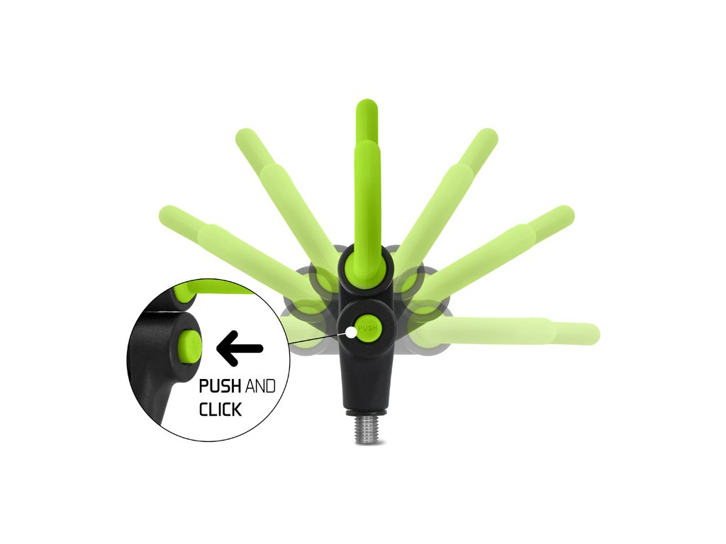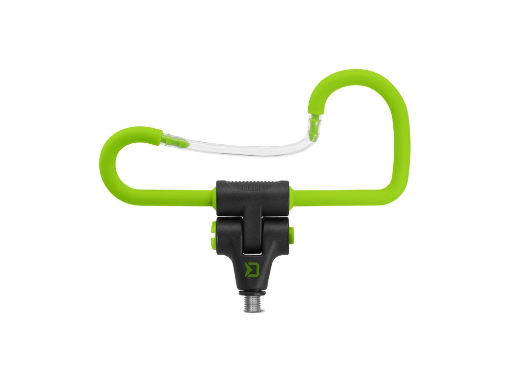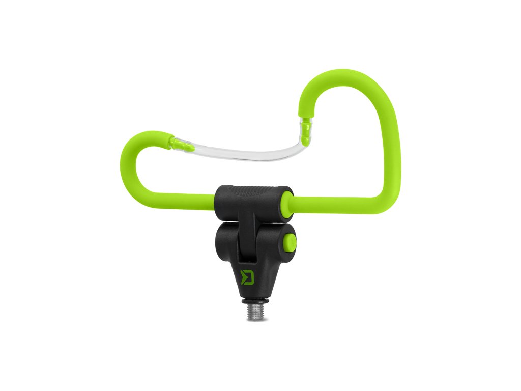 Držák na feeder tvaru L je výborným pomocníkem každého feederisty. Tvar držáku umožní udržet prut ve vidličkách i při silném záběru. Díky důmyslnému systému tlačítka ve spodní části, lze tento držák polohovat a následně polohu zajistit. Šířka ramen je 17cm. Držák je osazen univerzálním závitem a je kompatibilní s většinou vidliček a stojanů dostupných na trhu. Barevná zeleno-černá kombinace dokonale doplňuje feederovou řadu REAXE.