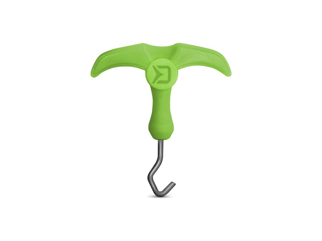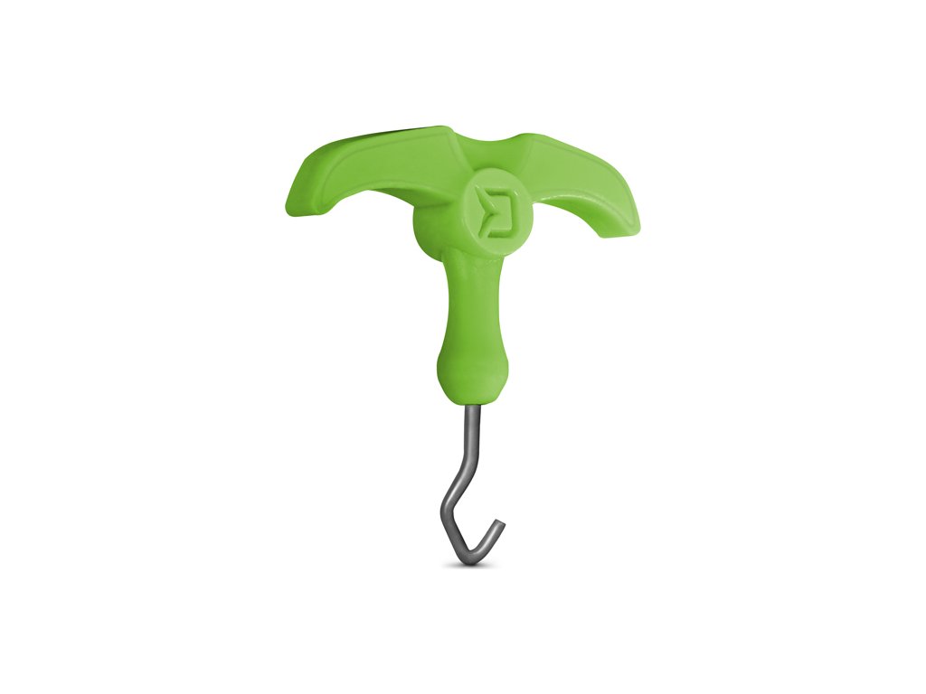 Delphin KNOTER je chytrý pomocník, který zaručí, že uzly na vašich montážích budou utaženy vždy na 120%. Část sloužící k uchopení je do detailů navržena a ergonomicky tvarována tak, aby vždy perfektně sedla mezi prsty. Tento tvar usnadňuje nejen uchopení, ale také samotné dotahování. Kromě toho se vyznačuje výraznou zelenou barvou, díky čemuž se KNOTER neztratí mezi ostatními prvky vaší výbavy. Kovová část je vyrobena ze silného a extra pevného drátu. Během dotahování se tak nemusíte bát použít opravdu velkou sílu.