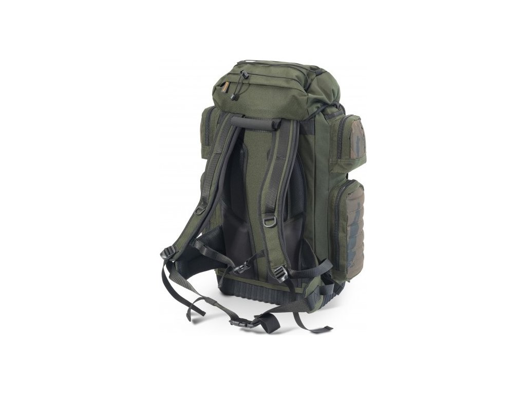 Díky silně polstrovaným zádovým a pásovým popruhům včetně hrudního perfektně sedí na místě určení a neřeže nebo netahá ani v případě, pokud si toho na záda naložíte hodně. A jako správný batoh má spoustu praktických kapes. S měnícími se trendy rybaření a především kvůli velkému množství různých více či méně potřebných doplňků mají v rámci organizace našeho nádobíčka své podstatné místo. Přední kapsy u tohoto modelu jsou na čelní straně vybaveny odolným materiálem EVA, který chrání křehký a citlivý obsah, např. telefon, kompaktní fotoaparát nebo signalizátory záběru, při pádu nebo nárazu. Další kvarteto kapes, kam můžeme umístit různé krabičky s drobnostmi, najdeme na bocích batohu. Kapsy, tentokrát síťované, se nacházejí i v hlavním úložním prostoru. A nakonec je tady jedna velká přední kapsa opatřená dlouhým zipem.