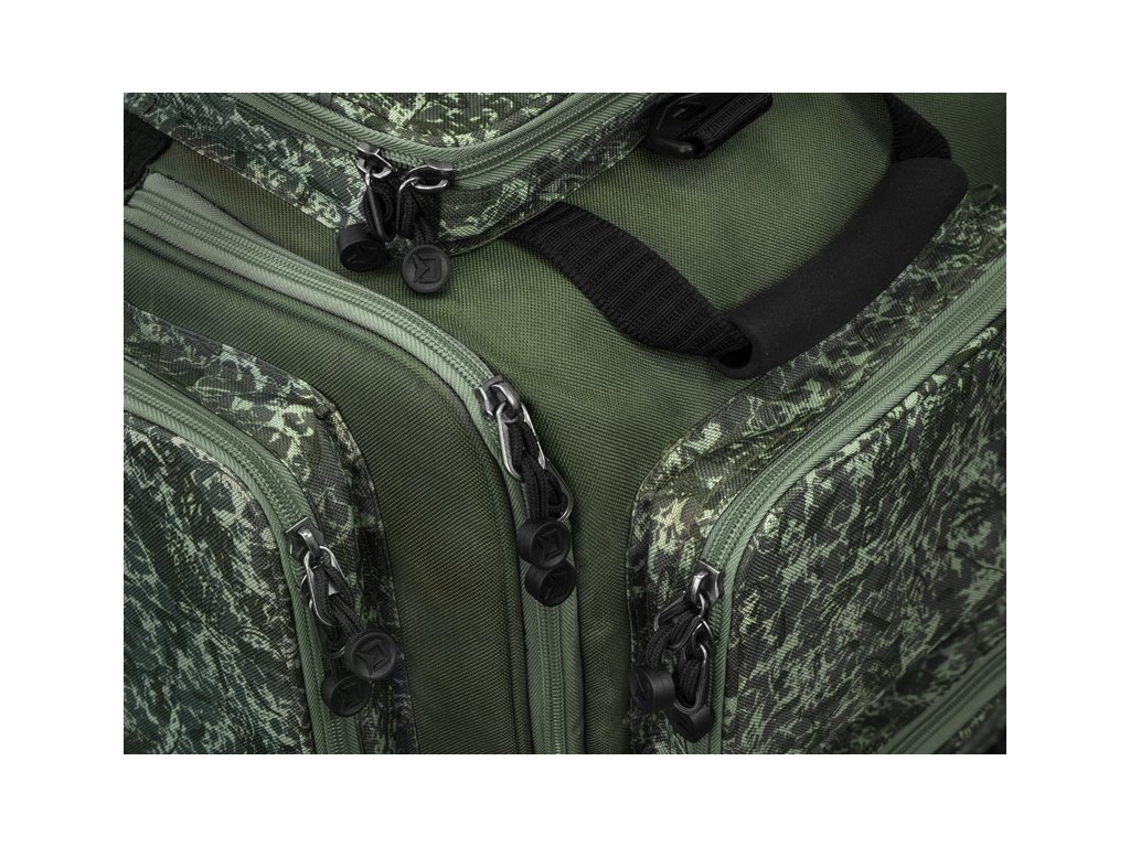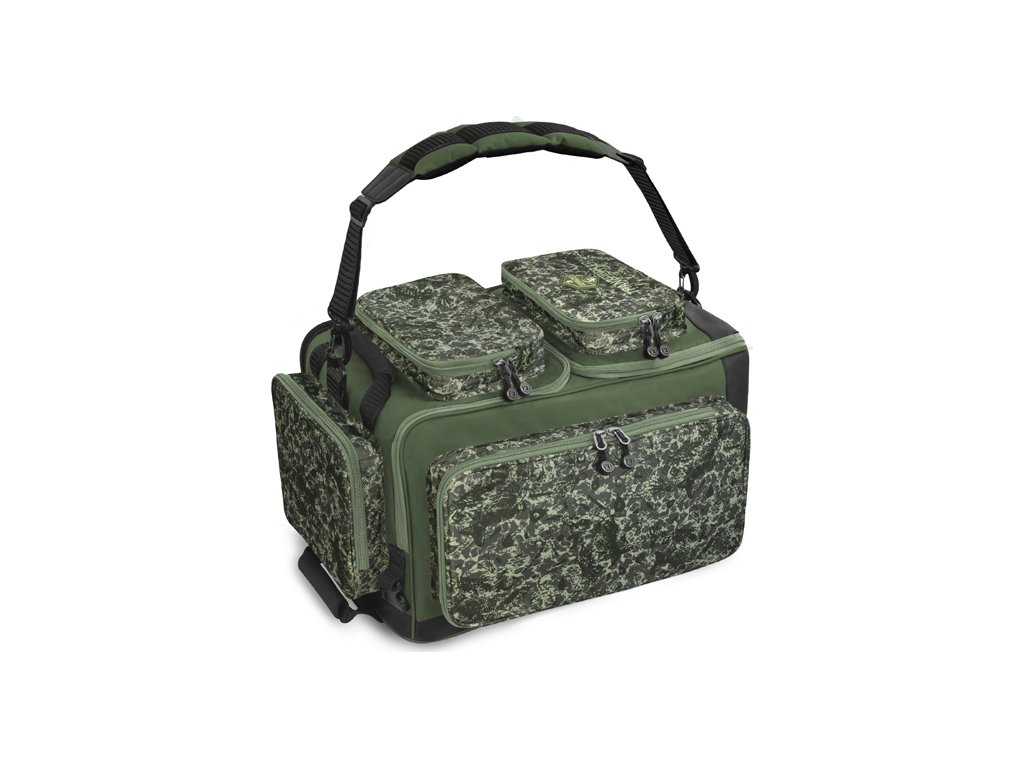 Delphin SPACE je označení pro exkluzivní sérii tašek z dílny značky Delphin. Vyznačuje se špičkovým zpracováním, kvalitními zipy, ale zejména výjimečným designem s použitím C2G kamufláže. Produkty dva v jednom jsou ve většině nepoužitelné, právě proto se jim obloukem vyhýbáme. Výjimku může tvořit jen produkt, který v obou funkcích exceluje. A právě to je TRANZPORTER. Volejte ho plnohodnotný batoh! Říkejte mu plnohodnotná carryall taška na rameno! Pravda je taková, že ve skutečnosti je to plnohodnotný průnik obou těchto modelů v jednom designu! Do nejmenších detailů propracovaný produkt, na kterém jsme si při vývoji dali opravdu záležet. Jeho objem 55 litrů umožňuje sbalit opravdu vše, co při svých expedicích potřebujete. Pokud svou výbavu potřebujete přenést na větší vzdálenosti, jednoduše ho díky ramenním popruhům použijete jako batoh, přičemž o pohodlí vašich zad se postará měkčená odnímatelná výztuha. Právě slovo odnímatelná je podstatné. Standardem u produktů 2v1 totiž bývá, že dosedací plocha zad batohu a dosedací plocha carryall tašky je stejná. To znamená 2 nevýhody. První je špína, kterou si po použití carryall tašky určitě nechcete dát na záda. Druhou je slabá ergonomie této společné plochy. My jsme to ale vyřešili. Hřbet je možné opatřit speciální vrstvou, která ochrání Vaše záda od nečistot a zároveň dopřeje pohodlí páteři. V případě potřeby tuto vrstvu odpojíte, spolu s ní i ramenní popruhy a na světě je najednou plnohodnotná taška přes rameno. Na její spodní části je vrstva snadno čistitelné PVC, která je 100% voděodolná, a tak ji můžete bez starostí položit kdekoli na zem. Další výhodou je úchyt opatřený EVA rukojetí, díky kterému je možné TRANSPORTER bez obtíží zasouvat a vytahovat z pod lehátka. Navzdory své velikosti vám tak v bivaku nezabere další místo navíc. Uvnitř batohu / tašky se nachází odepínatelná přihrádka, která umožňuje v případě potřeby předělit vnitřní prostor na dvě části. Vy si tak můžete své věci uspořádat opravdu přehledně, případně si snadno oddělíte např. jídlo a oblečení od rybářských potřeb. K dokonalému pořádku a uložení věcí napomáhají i velké kapsy umístěné po bocích a vepředu opatřené kvalitními zipy s praktickým Delphin úchopem. Vstup do hlavní části TRANZPORTER-a umožňuje velký otvor přecházející z vrchní až do přední části a také druhý otvor na přední straně. Díky nim bez problémů dovnitř uložíte vše potřebné pro vaše výpravy, které se s TRANZPORTER-em stanou mnohem pohodlnější. Unikátní CARPATH design některých částí už jen efektivně podtrhuje jedinečnost tohoto skvělého produktu. Technické parametry: Celkový rozměr včetně kapes ŠxVxH: 45cm x 50cm x 40cm Rozměr hlavní části batohu ŠxVxH: 30cm x 45cm x 30cm Rozměr přední kapsy ŠxVxH: 24cm x 16cm x 5cm Rozměr boční kapsy ŠxVxH: 39cm x 20cm x 5cm Stylová patentovaná kamufláž z dílny značky Delphin pod označením C2G má mnoho podob a úhlů pohledu. Přesně tak i její název, který můžeme volně přeložit jako Carpath 2. generace, což přímo odkazuje na jejího předchůdce, ale můžeme ho číst i jako Carpath to Green, tedy přechod myšlenky Carpathu do zelené barvy. Její jedinečnost a nezaměnitelnost spočívá v prvcích, ze kterých je vytvořena. Na první dojem jde o kamufláž tvořenou třemi různými odstíny zelené. Všechno se však změní při detailnějším pohledu, kdy si všimnete siluety kaprů, komponentů kaprařské montáže a log značky Delphin spolu s označením C2G. Díky tomuto neopakovatelnému provedení se vaše rybářská výbava okamžitě stane jedinečnou a maximálně originální.