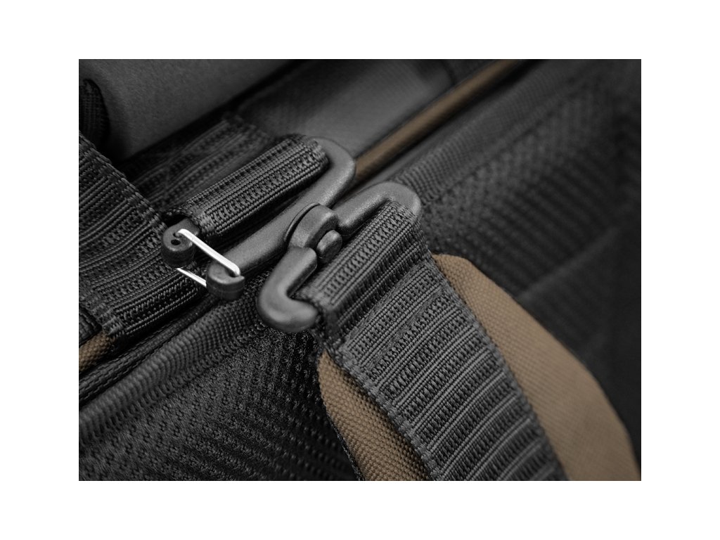 Produkty dva v jednom jsou ve většině nepoužitelné, právě proto se jim obloukem vyhýbáme. Výjimku může tvořit jen produkt, který v obou funkcích exceluje. A právě to je TRANZPORTER. Volejte ho plnohodnotný batoh! Říkejte mu plnohodnotná carryall taška na rameno! Pravda je taková, že ve skutečnosti je to plnohodnotný průnik obou těchto modelů v jednom designu! Do nejmenších detailů propracovaný produkt, na kterém jsme si při vývoji dali opravdu záležet. Jeho objem 55 litrů umožňuje sbalit opravdu vše, co při svých expedicích potřebujete. Pokud svou výbavu potřebujete přenést na větší vzdálenosti, jednoduše ho díky ramenním popruhům použijete jako batoh, přičemž o pohodlí vašich zád se postará měkčená odnímatelná výztuha. Právě slovo odnímatelná je podstatné. Standardem u produktů 2v1 totiž bývá, že dosedací plocha zad batohu a dosedací plocha carryall tašky je stejná. To znamená 2 nevýhody. První je špína, kterou si po použití carryall tašky určitě nechcete dát na záda. Druhou je slabá ergonomie této společné plochy. My jsme to ale vyřešili. Hřbet je možné opatřit speciální vrstvou, která ochrání Vaše záda od nečistot a zároveň dopřeje pohodlí páteři. V případě potřeby tuto vrstvu odpojíte, spolu s ní i ramenní popruhy a na světě je najednou plnohodnotná taška přes rameno. Na její spodní části je vrstva snadno čistitelné PVC, která je 100% voděodolná, a tak ji můžete bez starostí položit kdekoli na zem. Další výhodou je úchyt opatřený EVA rukojetí, díky kterému je možné TRANSPORTER bez obtíží zasouvat a vytahovat z pod lehátka. Navzdory své velikosti vám tak v bivaku nezabere další místo navíc. Uvnitř batohu / tašky se nachází odepínatelná přihrádka, která umožňuje v případě potřeby předělit vnitřní prostor na dvě části. Vy si tak můžete své věci uspořádat opravdu přehledně, případně si snadno oddělíte např. jídlo a oblečení od rybářských potřeb. K dokonalému pořádku a uložení věcí napomáhají i velké kapsy umístěné po bocích a vepředu opatřené kvalitními zipy s praktickým Delphin úchopem. Vstup do hlavní části TRANZPORTER-a umožňuje velký otvor přecházející z vrchní až do přední části a také druhý otvor na přední straně. Díky nim bez problémů dovnitř uložíte vše potřebné pro vaše výpravy, které se s TRANZPORTER-em stanou mnohem pohodlnější. Unikátní CARPATH design některých částí už jen efektivně podtrhuje jedinečnost tohoto skvělého produktu. Technické parametry: Celkový rozměr včetně kapes ŠxVxH: 45cm x 50cm x 40cm Rozměr hlavní části batohu ŠxVxH: 30cm x 45cm x 30cm Rozměr přední kapsy ŠxVxH: 24cm x 16cm x 5cm Rozměr boční kapsy ŠxVxH: 39cm x 20cm x 5cm