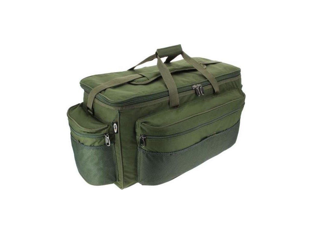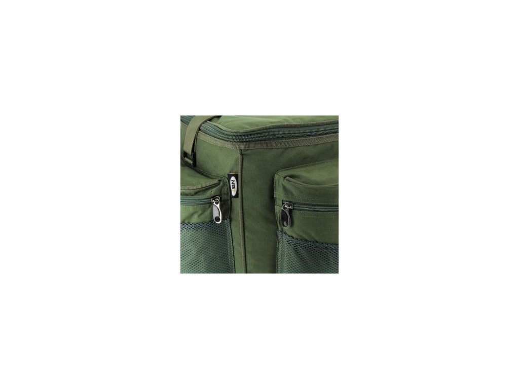 Velmi prostorná rybářská taška od anglické firmy NGT v olivově zeleném provedení s velkým hlavním prostorem a 3 dalšími kapsami po stranách a čelními komorami s vnějšími síťovanými kapsami. Polstrované rukojeti a polstrovaný nastavitelný ramenní popruh jsou jako standard. Vyrobeno z nepromokavé 600D polyesteru s PVC podkladem a lemované výztuhou.