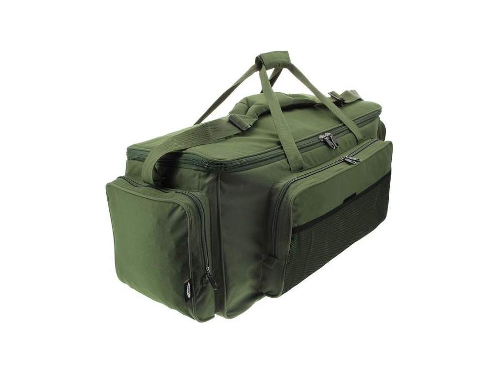 NGT přichází s novým nástupcem nejprodávanější tašky Green Insulated Carryall 909-L a to v podobně velmi kvalitní, polstrované rybářské tašky v klasické zelené barvě s velkou síťovanou kapsou vpředu. Kvalitní a robustní zipy vám zaručí dlouhou výdrž a spokojenost. Hlavní kapsa je vypolstrovaná a vybavená částečnou termoizolací. Můžete tak udržet déle v chladu jak potraviny tak třeba boilie nebo pelety. Polstrování je 1,5 cm silné. Drží naprosto dokonale svůj tvar, ale přitom jde složit téměř na plocho. Samozřejmostí je kvalitní polstrovaný popruh. Jako materiál byl použit voděodolný polyester 600D s PVC potahem . Taška je tak naprosto voděodolná.