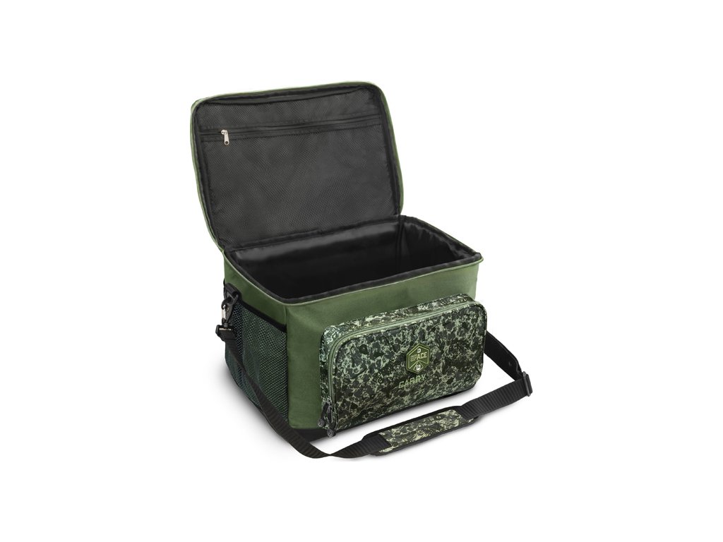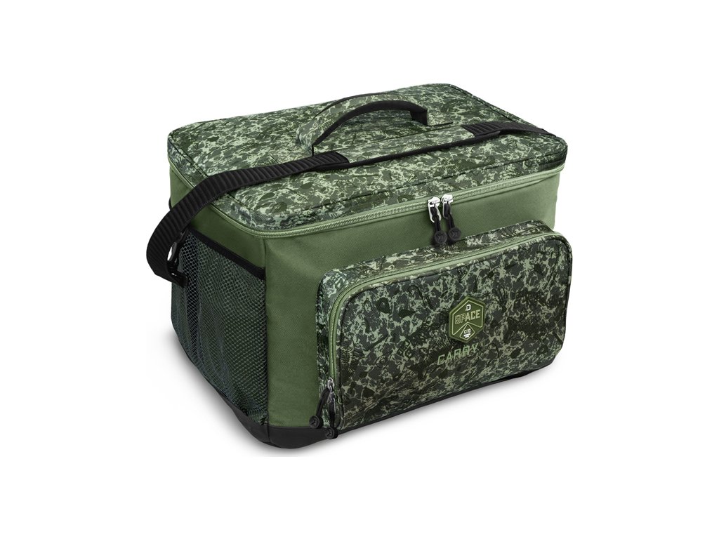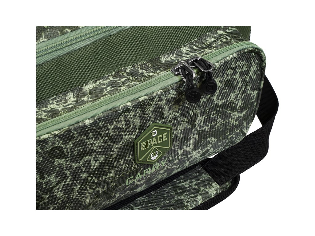 Delphin SPACE je označení pro exkluzivní sérii tašek z dílny značky Delphin. Vyznačuje se špičkovým zpracováním, kvalitními zipy, ale zejména výjimečným designem s použitím C2G kamufláže. CarryALL L doplňuje rodinu CarryALL SPACE C2G o rozměrově kompaktnější, praktickou transportní tašku, určenou k uložení a přenosu různého kaprařského příslušenství, či oblečení. Díky svým rozměrům poskytuje objem až 35l. Tak jako všechny ostatní tašky v této řadě, i velikost L byla navržena s důrazem na praktičnost, trvanlivost a odolnost vůči nepříznivým povětrnostním vlivům. Brašna je ze všech stran důkladně polstrovaná pro maximální ochranu příslušenství uvnitř. Celá spodní část a boky do výšky až 5 cm jsou opatřeny kvalitním nepromokavým materiálem. Nehrozí tak znečištění a následně znehodnocení produktu při položení například na mokrou nebo špinavou zem. Dvě síťované kapsy po bocích a jedna velká uvnitř umožňují uložení dalšího příslušenství, o kterém budete mít vždy dokonalý přehled. Taška disponuje také praktickou kapsou se dvěma zipy na předním panelu. Samotný vnitřek je navržen tak, aby do něj bylo možno s lehkostí vkládat další tašky série SPACE či AREA. Maximální komfort zajišťuje mimořádně měkké polstrování ramenního popruhu či praktická rukojeť umožňující přenos tašky v ruce. Celkový design samozřejmě dotváří C2G kamufláž v kombinaci s černými prvky, efektní logo či piktogram v přední části. Technické parametry: Rozměr tašky: 42x35x30cm Čistý rozměr vnitřního prostoru: 40x30x27cm Rozměr přední kapsa: 30x20x5cm Rozměr boční kapsy: 28x20cm Vnitřní síťovaná kapsa: 40x30cm Objem: 35l Stylová patentovaná kamufláž z dílny značky Delphin pod označením C2G má mnoho podob a úhlů pohledu. Přesně tak i její název, který můžeme volně přeložit jako Carpath 2. generace, což přímo odkazuje na jejího předchůdce, ale můžeme ho číst i jako Carpath to Green, tedy přechod myšlenky Carpathu do zelené barvy. Její jedinečnost a nezaměnitelnost spočívá v prvcích, ze kterých je vytvořena. Na první dojem jde o kamufláž tvořenou třemi různými odstíny zelené. Všechno se však změní při detailnějším pohledu, kdy si všimnete siluety kaprů, komponentů kaprařské montáže a log značky Delphin spolu s označením C2G. Díky tomuto neopakovatelnému provedení se vaše rybářská výbava okamžitě stane jedinečnou a maximálně originální.