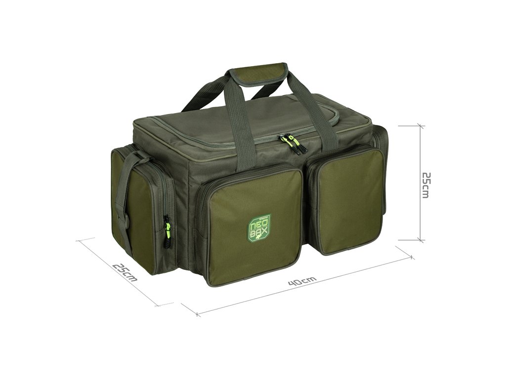 Odolná a praktická CarryAll taška vyznačující se velkým úložným prostorem a spoustou praktických kapes, díky čemuž bez problémů pojme rybářskou výbavu i oblečení. Díky svým rozměrům nabízí dostatek úložného prostoru a spolehlivě ochrání obsah před nepříznivými podmínkami. Vyrobená je z kvalitních materiálů, které prodlužují její životnost a zároveň chrání samotnou tašku. Pro maximální bezpečnost výbavy je celý vnitřní prostor důkladně polstrovaný – což v této cenové kategorii rozhodně není samozřejmostí. Spodní část je navíc opatřena nepromokavou vrstvou z odolného gumového materiálu, takže ji bez obav můžete položit i na mokrou či znečištěnou zem. Hlavní úložný prostor doplňují čtyři prostorné kapsy se zipem, umístěné na přední a bočních stranách tašky. Boční kapsy mají ideální rozměry pro uložení dokladů či různého rybářského příslušenství, například cívky s náhradním vlascem. Každá kapsa je opatřena kvalitním zipem s běžci ve výrazné barvě, díky čemuž je snadno najdete i během noci. O maximální komfort při transportu se stará nastavitelný ramenní popruh s polstrovanou částí na rameno a pevné rukojeti, které umožňují pohodlné nošení v ruce. Produkty ze série NeoBAX se vyznačují kvalitním zpracováním a odolnými materiály, důkladným polstrováním a vkusným designem, přičemž všechny tyto vlastnosti jsou zkombinovány v jednom produktu a dostupné za překvapivě příjemnou cenu. Technické parametry: Celkový rozměr včetně kapes ŠxVxH: 40x25x25cm Rozměr přední kapsa: 20x20 cm Rozměr přední kapsa: 15x20 cm Rozměr boční kapsy: 20x20 cm
