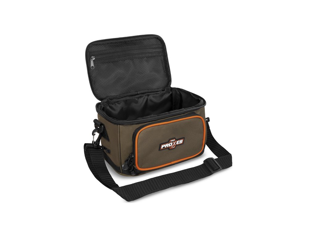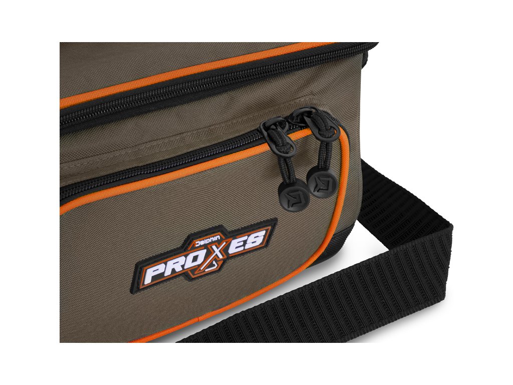Delphin PROXES Easy L je kompaktní praktická taška, jejíž univerzálnost a provedení ocení zejména příznivci přívlače, feederu či plavané. Easy L, ale i jiné produkty ze série PROXES jsou specifické kvalitním provedením, vysokou praktičností, 100% funkčností a to vše za velmi příjemnou pořizovací cenu. Barevná kombinace řady PROXES poskytuje decentní vzhled ladící s přírodou. Oranžové lemy představují příjemný kontrast a zároveň poskytují lepší viditelnost za nepříznivých povětrnostních podmínek nebo za šera. Taška je zhotovena z kvalitních a odolných materiálů. Navíc je její spodní část dodatečně chráněna gumovou vrstvou přesahující nad dno tašky pro zamezení prostupu vlhkosti z mokré země. Hlavní část tašky tvoří dostatečně velký úložný prostor, ve kterém je již v základu umístěn průhledný plastový box s pořadatelnými přihrádkami, díky čemuž budete mít dokonalý přehled nad jeho obsahem. Box je svými rozměry vhodný například na přívlačové nástrahy, feederová krmítka, či jiné menší příslušenství. Přístup do hlavního úložného prostoru poskytuje kvalitní zip s taháčky a s logem značky Delphin. Víko tašky z vnitřní strany navíc ukrývá zipovatelnou kapsu ze síťoviny pro uložení drobné rybářské bižuterie nebo dokladů. Kromě toho taška nabízí další ukládací prostor ve formě zipovatelné kapsy na přední straně. Protože u všech našich produktů dbáme na detaily, i u tašky Easy L jsme na obou stranách tašky přidali poutka pro vložení peanu nebo kleští. Tašku lze pohodlně přenášet pomocí kvalitního, odepínatelného, délkově nastavitelného popruhu pro nošení přes rameno, nebo pomocí textilní rukojeti umístěné na víku. Technické parametry L: Vnější rozměry: 27x19x16cm Rozměr hlavní části: 27x16x16cm Rozměr přední kapsy: 16x11x3cm Rozměr krabice: 23x12x4cm