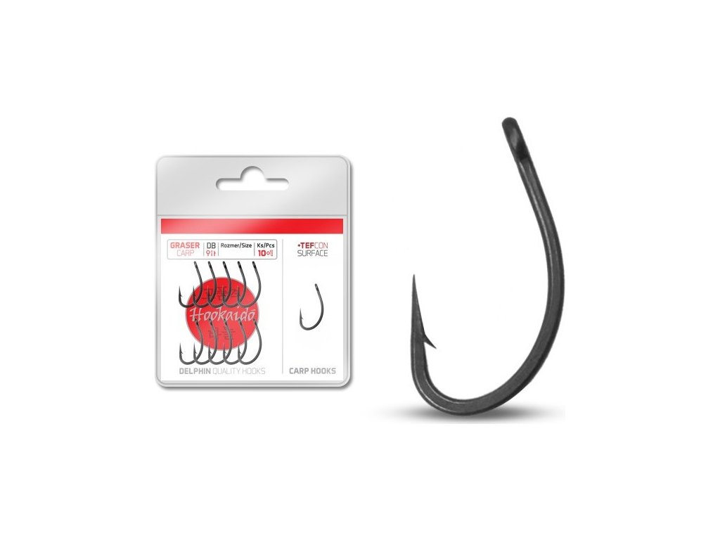 A Delphin HOOKAIDO fehér sorozatába tartozó horgokat kizárólag pontyok horgászatára szánták. A horgok a lehető legjobb tulajdonságokkal rendelkeznek. A legjobb minőségű alapanyagból készülnek, felületük pedig TEFCON réteggel van bevonva. A felület a horgok visszatükröződés mentes matt felületét biztosítja. Emellett a horgok jobb teljesítményéhez is hozzájárul. A HOOKAIDO sfehér színű sorozata a legellenállóbb pontyokkal is felveszi a harcot a horog nem kívánt elhajlítása nélkül. A legújabb élezési technikáknak köszönhetően a horgok hegye hosszabb idejű használat esetén is tökéletesen éles. A Delphin HKD GRASER rendkívül szilárd. Felépítése extrém akadályok közötti nehéz horgászatra alkalmas. Műszaki paraméterek: - füllel - ellencsúccsal - tengelyirányban egyenes - keresztmetszet: lapos