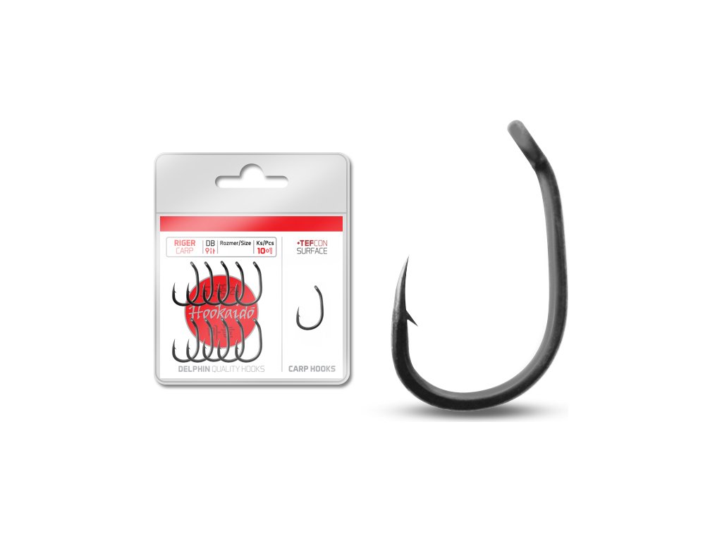 Háčky bílé série Delphin HOOKAIDO jsou nejvyšší řadou určenou výsostně na lov kaprů. Tyto háčky vynikají těmi nejlepšími vlastnostmi. Vyrobené jsou z nejkvalitnějších surovin a jejich povrch je potažen vrstvou TEFCON-u. Tento povrch zaručuje matný vzhled háčků bez odlesků. Stejně se podílí na lepších vlastnostech daných háčků. Bílá série HOOKAIDO si poradí i s těmi najbojovnejšími kapitálními kusy kaprů bez nežádoucího ohnutí háčku. Díky nejnovějším technologiím ostření je jejich hrot dokonale ostrý i po delším používání. Delphin HKD Riger je postaven jako vysoce pevný háček. Tvar očka dovnitř umožňuje skvělé využití s tvrdými fluorocarbonovými návazci. Technické parametry: - s očkem - s protihrotem - osově zakřivený - průřez: zploštělý
