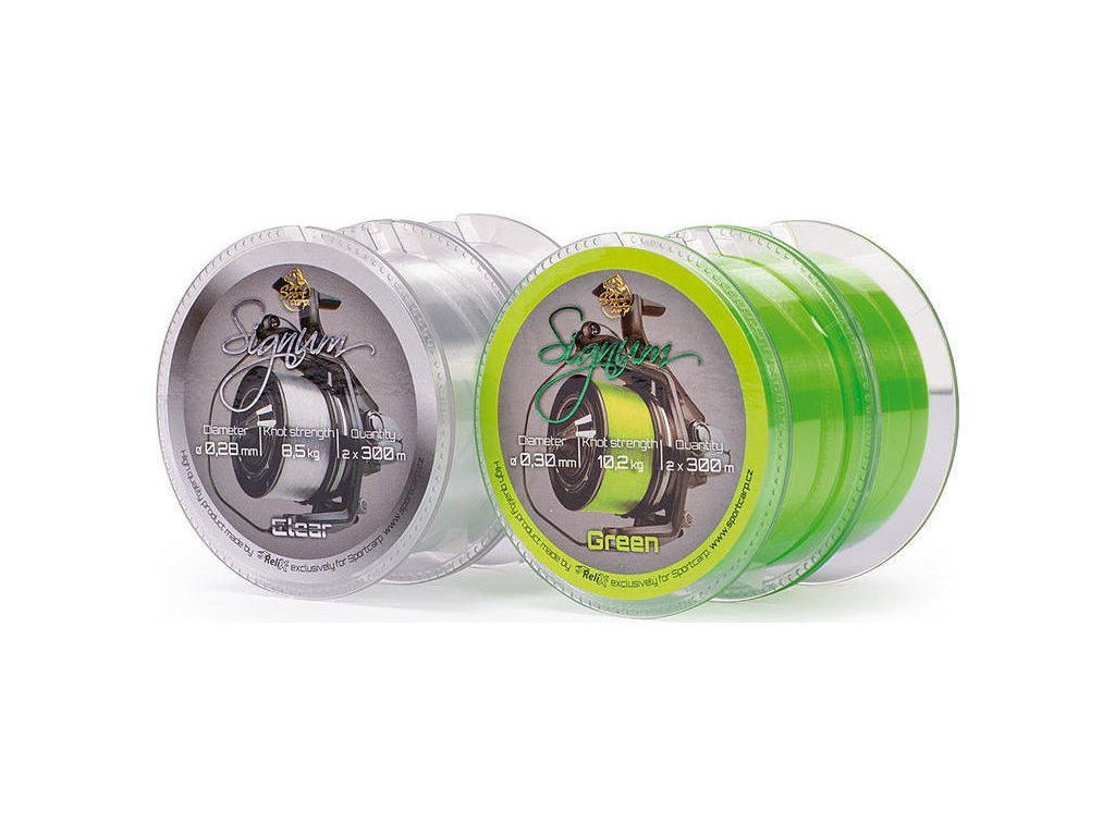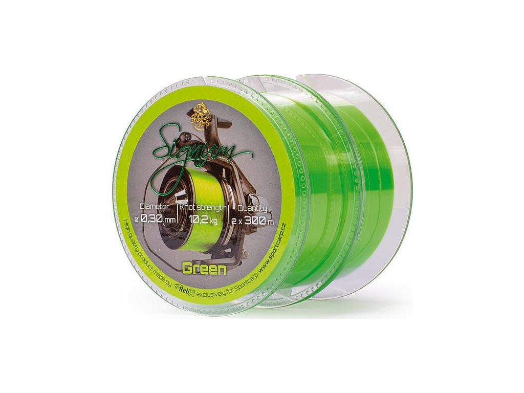 Mezi hlavní přednosti patří perfektně hladký povrch, který prodlouží Vaše hody. Odolnost proti oděru a extrémní pevnost v uzlu zaručuje speciální povrchová úprava. Další výjimečností vlasce Signum je minimální náchylnost ke kroucení. Vlasec je paralelně navinut na dvou spojených cívkách po 300 metrů a je k dispozici ve dvou barvách, a to čírý a zelený.