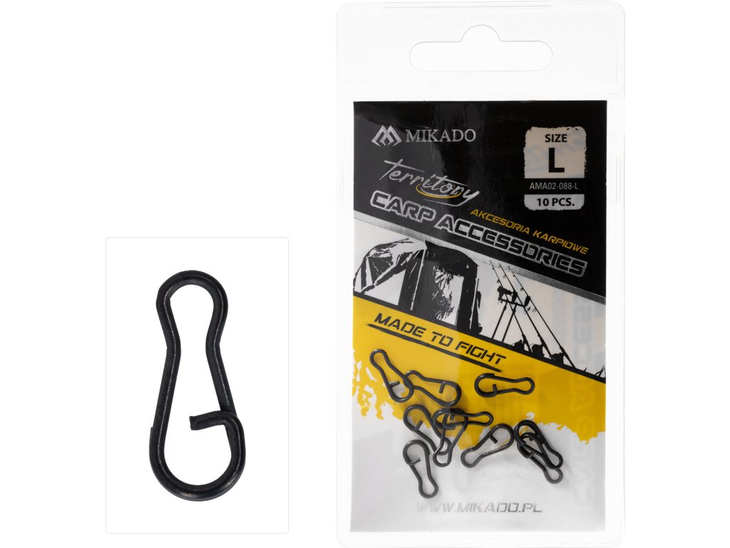 Standardní karabinka v matné černé barvě. Díky svému speciálnímu tvaru a vysoké odolnosti je ideální jako spojka pro kaprové návazce a montáže.