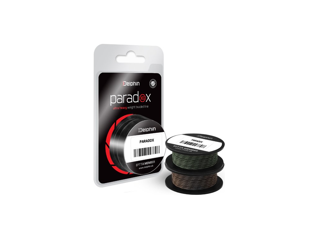 "...těžká jako "leadcore", avšak bez olověného jádra..." PARADOX je revoluční šňůrou z dílny Delphin. Pro výrobu bylo použito 16 výjimečných mikrovláken, které jsou několikanásobně těžší v porovnání se standardními PE vlákny. Navíc je šňůra extrémně hustě pletená, což do maximální míry zvyšuje jejich množství na 1cm šňůry. Šnůra je tak mimořádně těžká a oděruvzdorná. Speciálním pletením je dosažena dutá středová část, což umožňuje vytvářet bezuzlové smyčky pro garanci stejné nosnosti návazce po celé jeho délce. Tato šňůra neobsahuje olověné jádro, ale přesto je těžší oproti běžnému „leadcore“. Dokonale kopíruje dno a vytváří tak neviditelný kaprařský návazec. Vzhledem na její charakteristické vlastnosti je určená do nejtěžších vod s množstvím překážek, mušlí či raků.