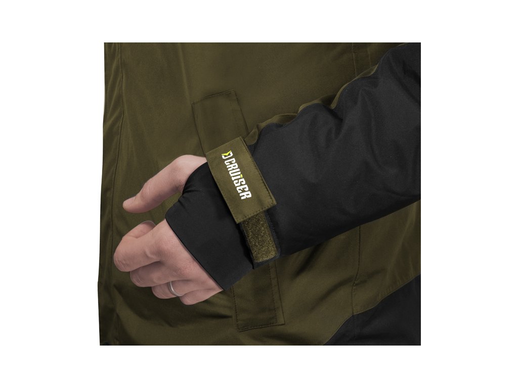 Nekompromisní, extra teplé oblečení, které vás ochrání před zimou a deštěm během studených zimních dnů. Takový je zimní komplet Winter Cruiser 5T, navržený značkou Delphin a testovaný v těch nejhorších povětrnostních podmínkách, se kterými se můžete u vody setkat. Komplet Winter Cruiser se skládá ze samostatně prodávané bundy a kalhot. Vnější vrstva bundy i kalhot je vyrobena z voděodolného materiálu s vodním sloupcem 5000mm a kompletně podlepenými švy. Tyto parametry zaručují maximální pohodlí, teplo a ochranu před deštěm během vašich rybářských výprav či jiného pobytu v přírodě. BUNDA Vnitřní strana bundy je opatřena na dotek velmi příjemnou fleecovou vrstvou, která pečuje o tepelný komfort. Stejný materiál je i na límci, díky čemuž nehrozí nepříjemný dotek na krku či škrábání. Uvnitř je i velmi praktická zipovatelná kapsa, vhodná například na doklady, či jiné cennosti. Kapsy se nacházejí také na vnější straně bundy. Všechny disponují výraznými, voděodolnými zipy, díky čemuž nehrozí natečení vody dovnitř. K voděodolnosti vnějších bočních kapes přispívají i překrytí, která jsou našita zvrchu. Boční kapsy mají navíc uvnitř fleecovou vrstvu, která vytváří ideální prostor pro zahřátí rukou. Bundu lze zapnout pomocí masivního a odolného dvojzipu, který je z vnější strany překryt lemem, čímž je chráněn před vodou a větrem. Pás bundy disponuje stahovatelnými gumičkami, které podstatně přispívají k udržení tepla uvnitř a minimalizují možnost podfouknutí. Samozřejmostí na bundě je kapuce, stahovatelná dvěma gumičkami. Devizou kapuce je také poutko se suchým zipem, pomocí kterého je možné ji velikostně přizpůsobit či zavěsit. Rukávy bundy jsou na zápěstích vybaveny stahovatelnými pásky se suchým zipem, ale i integrovaným ochranným rukávem na dlaň, přes který lze prostrčit palec. KALHOTY Už při prvním kontaktu s kalhotami je jasné, že zima v nich rozhodně nebude. Jednou z hlavních výhod je výrazně vyvýšený pás, čímž budou vaše záda, ale zejména kříže dokonale chráněny. Design kalhot stylově dotváří délkově nastavitelné kšandy s logy značky Delphin. V oblasti hýždí, kolen i kotníků se nachází zesílená černá látka, jejímž úkolem je ochrana před znehodnocením, těchto používáním nejvíce náchylných částí kalhot. Zároveň efektně přispívá k celkovému designu. Devizou kalhot je i 35 cm dlouhý zip, který lze rozepnout z vrchu i zespodu. Díky tomu se v případě potřeby nemusíte rozepínat či svlékat bundu. Ve spodní části kalhot se nacházejí pásky se suchým zipem, čímž je lze v oblasti kotníku rozšířit ale i obepnout těsně kolem bot. Dvě boční kapsy jsou vybaveny voděodolnými výraznými zipy, díky čemuž nehrozí zatečení vody dovnitř. Praktické poutko na zavěšení v zadní části jen zvýrazňuje propracovanost těchto kalhot. Při praní doporučujeme použít speciální prací prostředek na funkční oblečení, prát při max. 30°C, neždímat, nežehlit a v případě potřeby použít impregnační přípravek, který obnoví vodoodpudivou úpravu vnějšího materiálu.