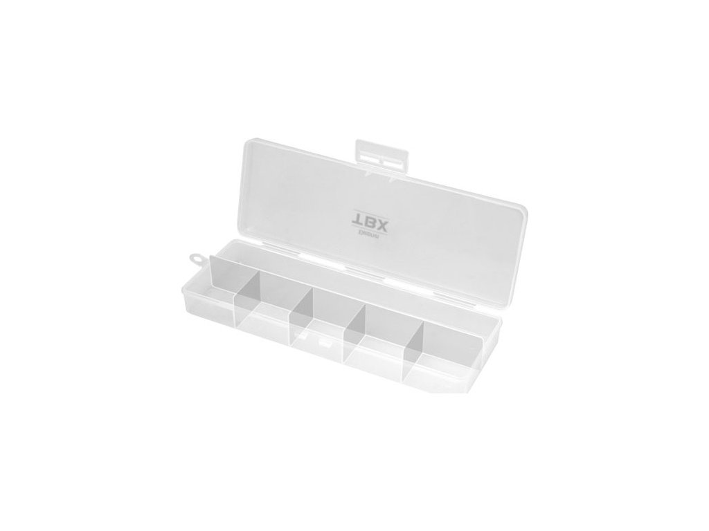 TBX ONE je rada multifunkčných krabičiek určených na uloženie rybárskeho príslušenstva. Vyrobené sú z transparentného plastu, takže máte vždy dokonalý prehľad o uložených veciach vo vnútri krabičky. Rada TXB ONE je vybavená praktickými klipmi z transparentného plastu. Technické parametre: Rozmer: 223x84x33mm Počet pevných priehradiek: 6 Rozmer veľkej priehradky: 1x (22,5x3,7x2,8cm), 1x(4,5x3,7x2,8cm) Počet vkladateľných priečinkov: 0