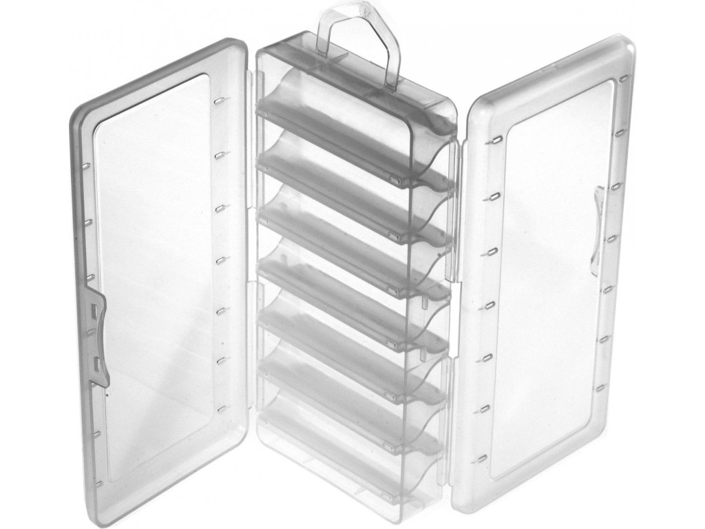 - Základní oboustranná uzavíratelná krabička primárně určená na umělé nástrahy na dravce