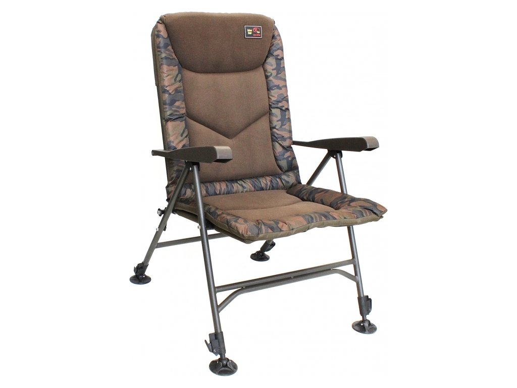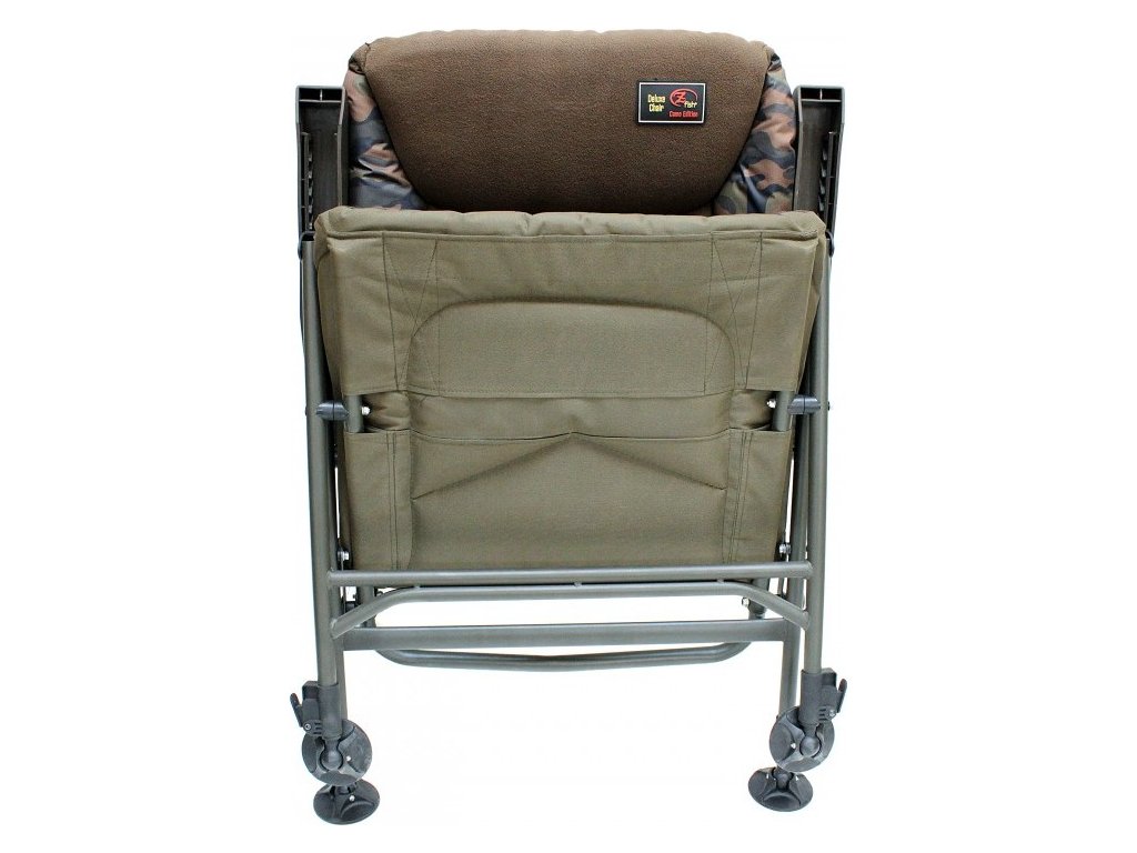 ZFISH představuje inovované křeslo Deluxe Camo Chair. Je to náš starý známý bestseller v novém kabátě. Jedná se o vylepšenou verzi Deluxe Chair v našem stylovém camo provedení. Použitím kvalitních materiálů jsme dosáhli snížení jeho hmotnosti při zachování pevné a stabilní konstrukce s nosností do 150 kg. Samozřejmostí je kvalitně polstrovaný sedák a opěrka z microfleece materiálu. Camo lemování je vyrobeno z voděodolného materiálu Ripstop. Křeslo vyniká vysokou opěrkou zad. Každý ocení polohovatelné područky, které umožňují až 8 různých poloh nastavení opěrky. Široké patky nohou zabraňují boření se v měkkém terénu a díky rychloklipům je nastavení polohovatelných nožiček hračkou. Toto křeslo poskytuje maximální komfort nejen rybářům, ale všem, kteří rádi tráví čas pohodlným posezením v přírodě.