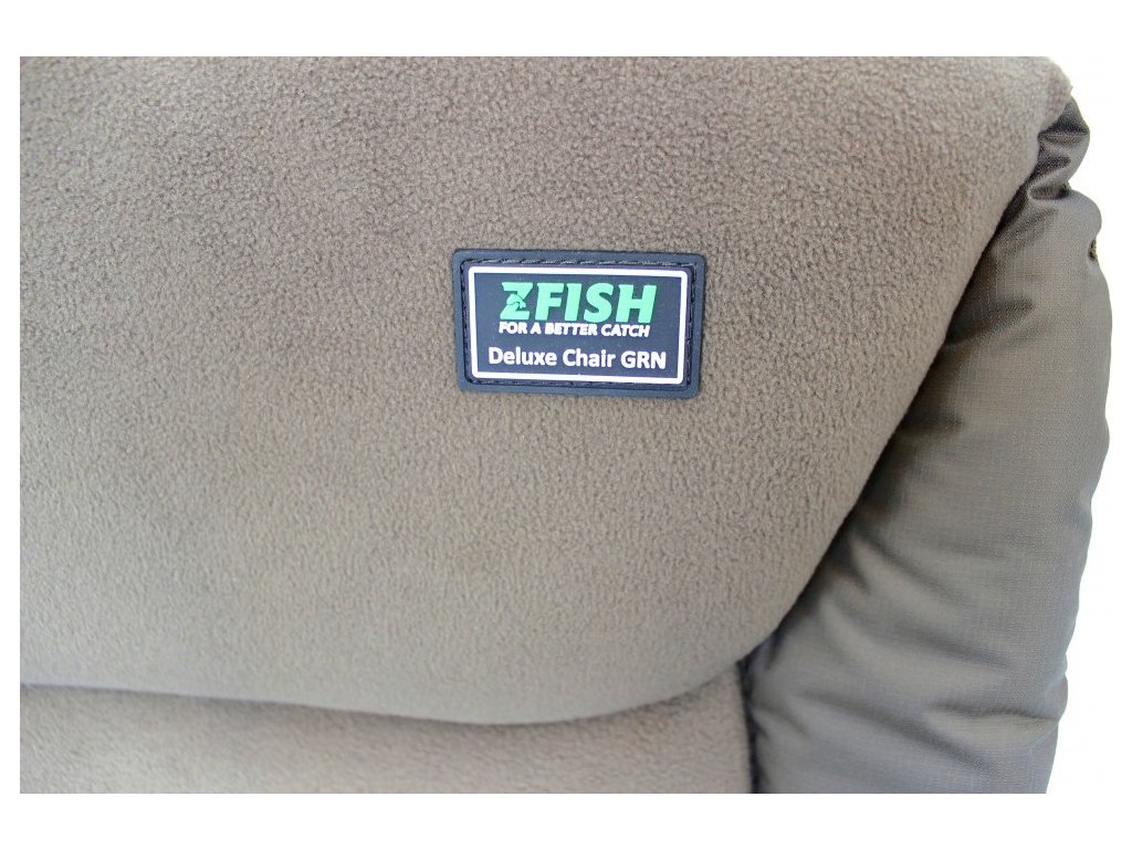 ZFISH představuje inovované křeslo Deluxe GRN Chair. Je to náš starý známý bestseller v novém kabátě. Jedná se o vylepšenou verzi Deluxe Chair. Použitím kvalitních materiálů jsme dosáhli snížení jeho hmotnosti při zachování pevné a stabilní konstrukce s nosností do 150 kg. Samozřejmostí je kvalitně polstrovaný sedák a opěrka z microfleece materiálu. Zelené lemování je vyrobeno z voděodolného materiálu Ripstop. Křeslo vyniká vysokou opěrkou zad. Každý ocení polohovatelné područky, které umožňují až 8 různých poloh nastavení opěrky. Široké patky nohou zabraňují boření se v měkkém terénu a díky rychloklipům je nastavení polohovatelných nožiček hračkou. Toto křeslo poskytuje maximální komfort nejen rybářům, ale všem, kteří rádi tráví čas pohodlným posezením v přírodě.