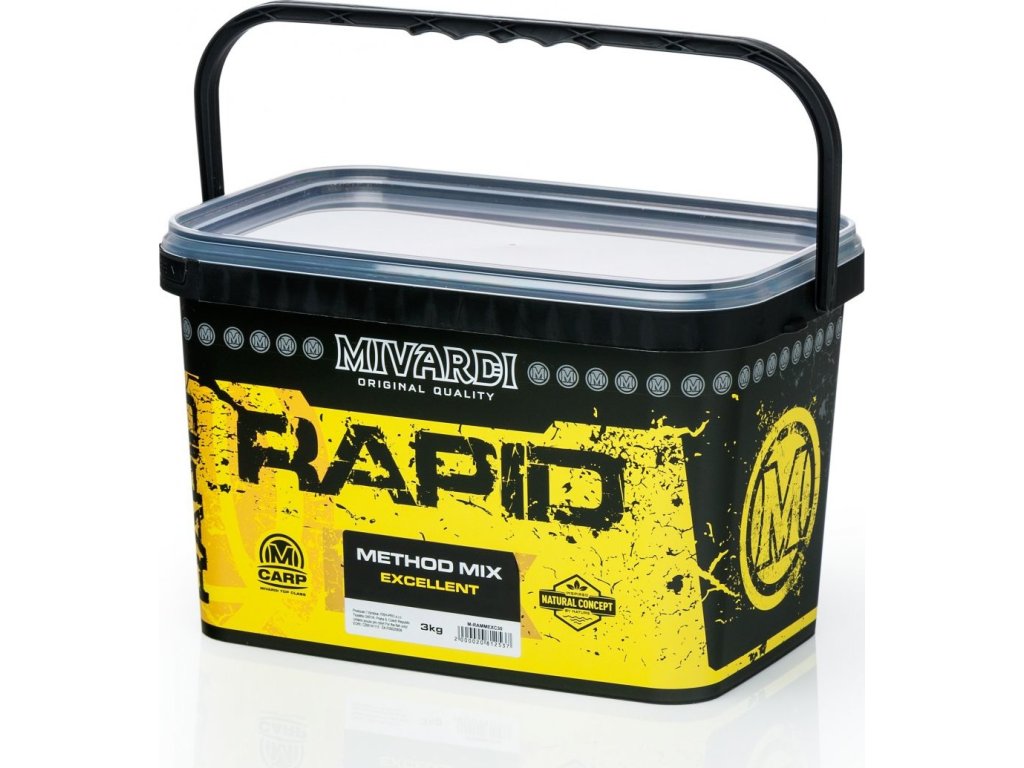 Velký pomocník při lovu kaprů při kratších vycházkách nebo pro nastartování lovného místa. Jeho složení se podobá boilie mixům, ale je výrazně hrubší pro lepší rozpad ve vodě. Úkolem method mixu je vytvoření lákavého zákalu, předání potravního signálu do vodního sloupce a stažení ryb do našeho loviště. Na tekoucí vody je vhodné přidat až 30% těžké hlíny. Pro zvýšení účinnosti použijte Aminoliquid Rapid (20 - 50 ml / kg) se stejným nebo podobným aroma jako použité nástrahy.