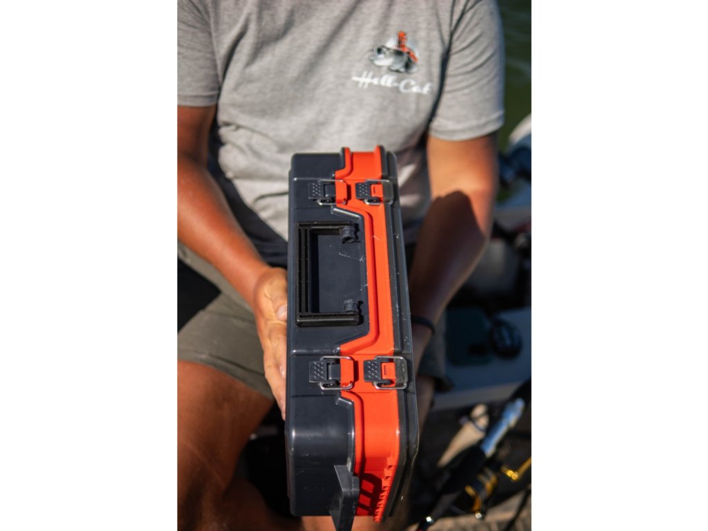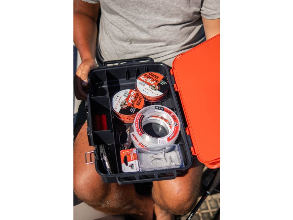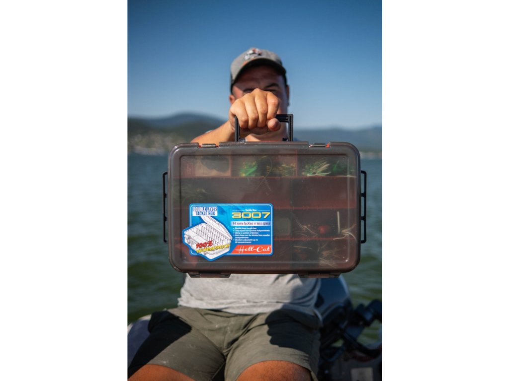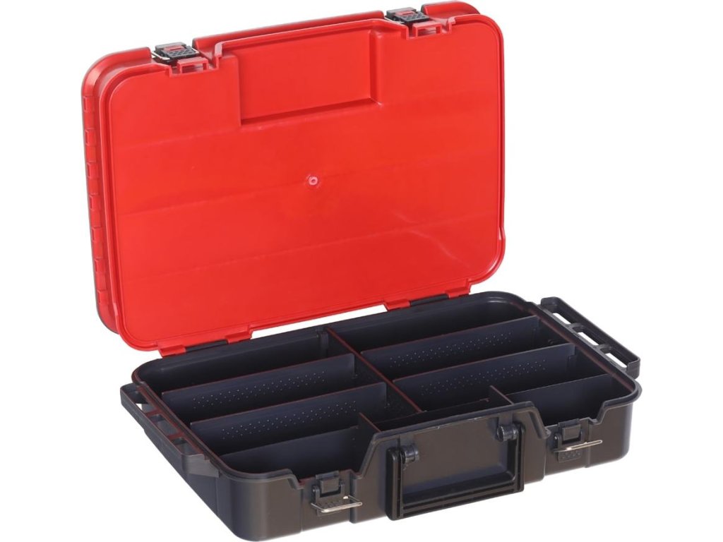 Praktický kufřík, který obsahuje dvě samostatně uzavíratelná patra, které uzamykají kovovými přezkami. Každé patro má nastavitelné přihrádky, spodní 9 větších a vrchní 18 menších.Na bocích jsou dva manipulační úchyty, a ve vrchní čísti je hlavní madlo sloužící k přenášení kufříku.Kufřík je vyroben z kvalitního plastu a je voděodolný, což ochrání rybářské doplňky před nežádoucí korozí.