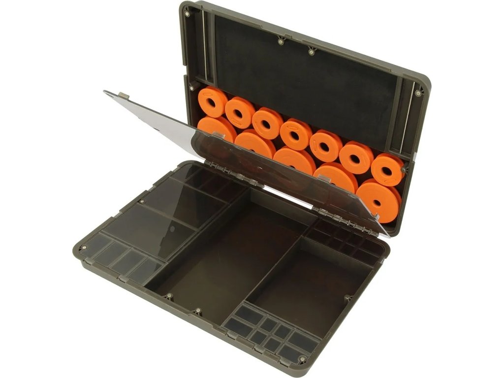 - Rozděleno do dvou částí, jedna je ideální jako zásobník návazců a montáží, druhá slouží k uložení potřebných drobností
