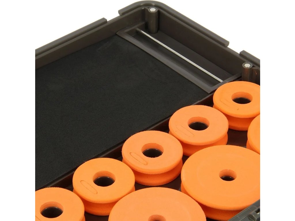 - Box obsahuje 5x větší a 7x menší civku/špulku na návazcové materiály, nebo si na ně můžete namotat už Vámi zhotovené a připravené návazce