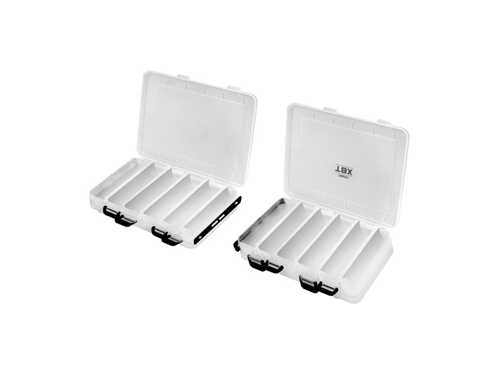 TBX Duo 210-12P Clip je multifunkčná krabička určená na uloženie voblerov a rybárskeho príslušenstva. Vyrobená je z transparentného plastu, takže máte vždy prehľad o uložených veciach vo vnútri krabičky. DUO znamená dva oddelené úložné priestory a to jeden z vrchnej a druhý zo spodnej časti s dômyselným otváraním. Vybavená je praktickými externými klipmi z čierneho plastu. Má zabudovanú skladateľnú rúčku pre jednoduchší transport. Technické parametre: Rozmer: 210x165x40mm Počet pevných priehradiek: 12 Rozmer priehradky: 2,5x14,5x3,5cm Počet vkladateľných priečinkov: 0