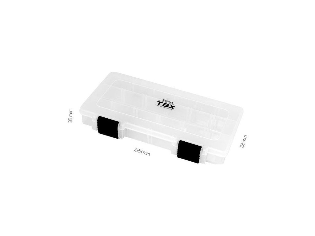 TBX ONE Clip je rada multifunkčných krabičiek určených na uloženie rybárskeho príslušenstva. Vyrobená je z transparentného plastu, takže máte vždy prehľad o uložených veciach vo vnútri krabičky. Vybavená je praktickými externými klipmi z plastu. Technické parametre: Rozmer: 228x112x35mm Počet pevných priehradiek: 3 Rozmer priehradky: 22,3x3,5x3cm Počet vkladateľných priečinkov: 9