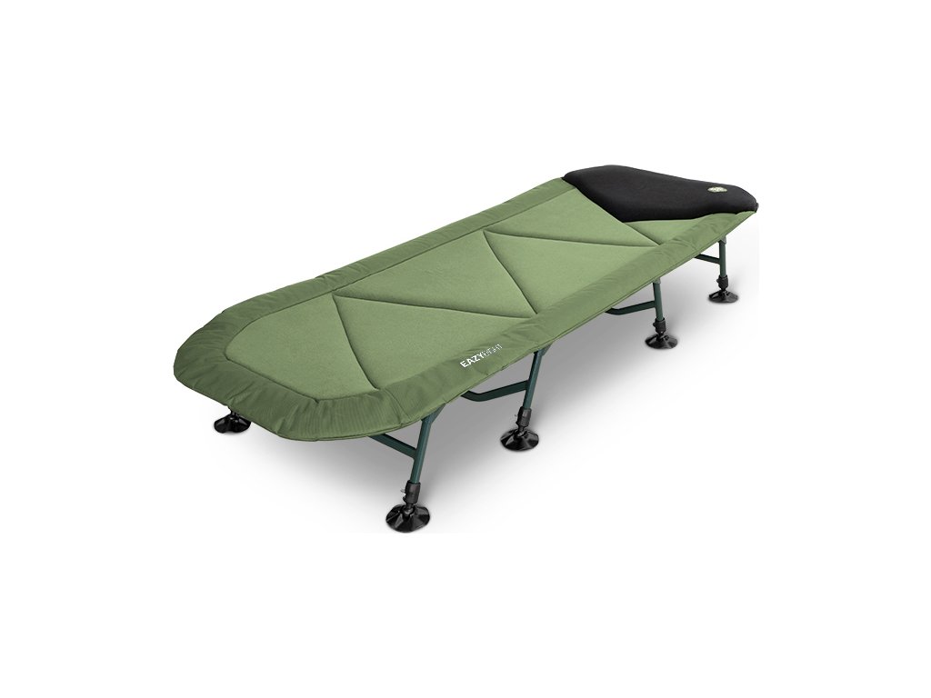 Komfortní osminohé lehátko, při kterém se skloubil excelentní poměr pohodlí, funkčnosti a příznivé pořizovací ceny. Jeho základem je velmi pevná, odolná a zároveň lehká konstrukce zelené barvy, která spolu s osmi nohami dodává lehátku potřebnou stabilitu. Výškově nastavitelné nohy jsou na koncích opatřeny robustními patkami na kulových čepech, což jim umožňuje přizpůsobit se nerovnostem terénu. Pár nohou pod hlavou je navíc opatřen zajišťovacím mechanismem, což usnadňuje rozložení lehátka a zároveň zabraňuje nechtěnému sklápění či posunu. Matrace je z vrchní části tvořena fleecovým materiálem s efektním prošíváním, čímž je velmi pohodlná, hřejivá a designově originální. Kromě toho je po obvodu opatřena odolnou 600D látkou zelené barvy, která přispívá k prodloužení životnosti produktu. Pro maximální pohodlí je ve vrchní, hlavové části extra polstrovaný fleecový panel. Tuhost matrace lze nastavit v části nohou a hlavy dotažením pevného lana, které je vedeno spodními okraji. Pokud tedy hledáte pohodlné lehátko za rozumnou cenu, určitě byste se měli poohlédnout právě po modelu EazyEIGHT8. Technické parametry: Rozměry matrace: 200x75cm Výška postele: 30-40cm Fixovatelný kloub: ne Hmotnost: 9,5kg Přepravní rozměry: 75x77x30cm Nosnost: 200kg Nosnost křesla/lehátka je velmi komplexní otázka. Odpověď je ovlivněna mnoha faktory, jako například rovinatost a stabilita podkladu, na kterém křeslo/lehátko rozkládáme a také samotné fyzické parametry člověka, který do něj sedá. Statické/nehybné zatížení bývá vždy vyšší, než namáhání dynamické (při sedání uživatele, z jaké výšky a jak plynule si sedá). Zjednodušeně lze uvést, že v ideálním případě je nosnost křesla/lehátka EazyEIGHT 8 přibližně 200kg.