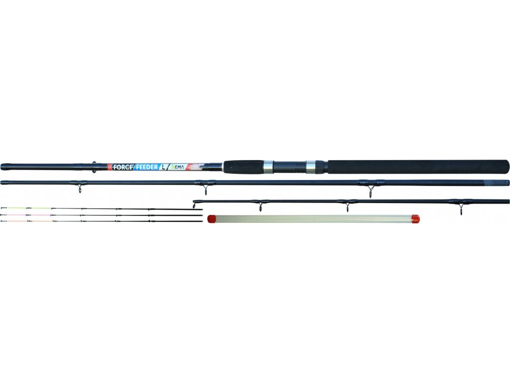 Pruty X-Force Feeder mají blank vyrobený z velmi kvalitního kompozitního materiálu, který se mimo jiné používá v letectví nebo i na mostní konstrukce, je velmi lehký a pružný. Tyto vlastnosti jsou pro výrobu prutu ideální. Pletená tkanina vytvrzená epoxidovým polymerem je zesílená axiálními vlákny, které zlepšují reakci prutu pri zdolávání a jeho nahazovací schopnosti - Composite Construction Internal Multifibre Reinforcement, materiál navíc dává prutu velkou odolnost. Špičky jsou velmi jemné, vyrobeny z plného a velmi odolného materiálu - Solid Multifibre Construction, rukojeť je z EVA - na dotek příjemného mechového materiálu a očka jsou tvrzená a odolná. Pruty se hodí především k lovu na kratší vzdálenosti a při použití lehčích a jemných montáží. Pruty jsou třídílné se třemi feederovými špičkami uloženými v ochranném tubusu, které jsou univerzální a dodávají se v gramážích 1/2 oz (14 g), 1 oz (28 g) a 1 1/2 oz (42 g). K nim lze dokoupit náhradní z řady SE3900....