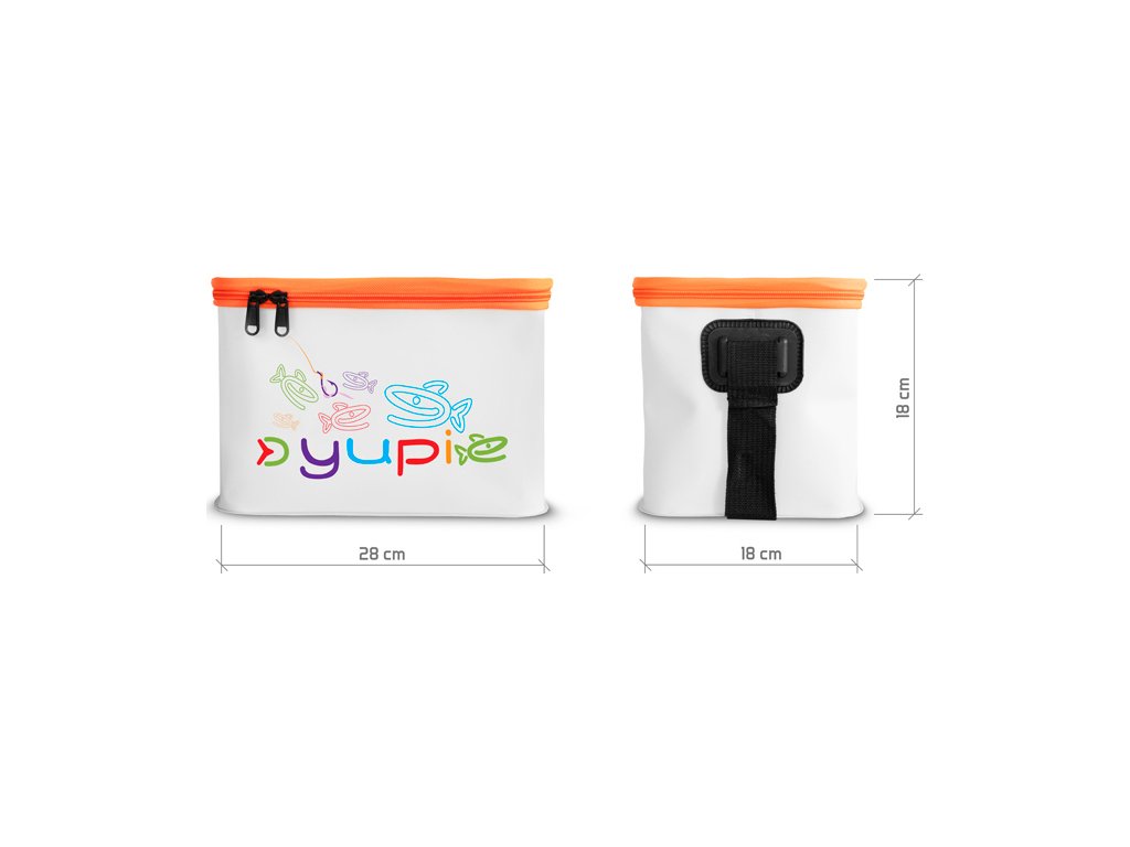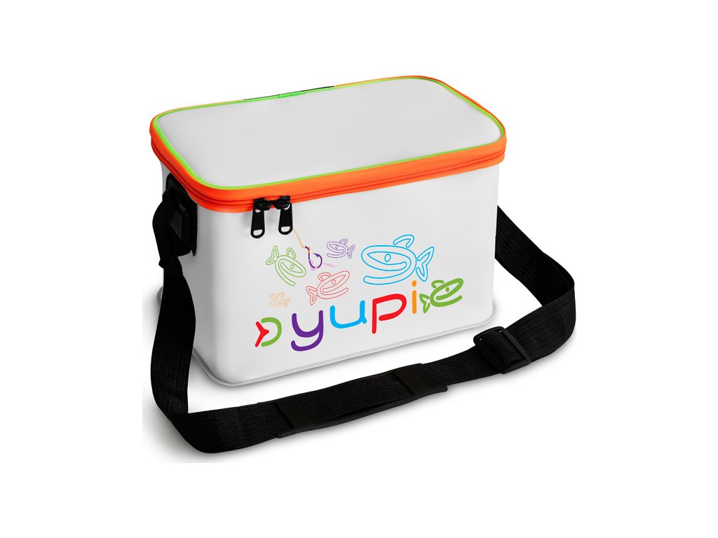 Univerzální carryAll taška, určená pro nejmenší rybáře, která výborně poslouží k uskladnění a přenosu různého rybářského vybavení. Taška bílé barvy je opatřena červeným zipem s výrazným zeleným lemem, který slouží ke kompletnímu uzavření. Design je ještě doplněn barevnou grafikou, která děti jistě zaujme. Taštička YUPIE je vyrobena z EVA materiálu, díky čemuž je snadno omyvatelná, odolná vůči případnému poškození a zvládne také hrubší zacházení. Je doplněna i praktickým černým popruhem pro snazší transport na rameni. Technické parametry: Rozměry: 28x18x18cm