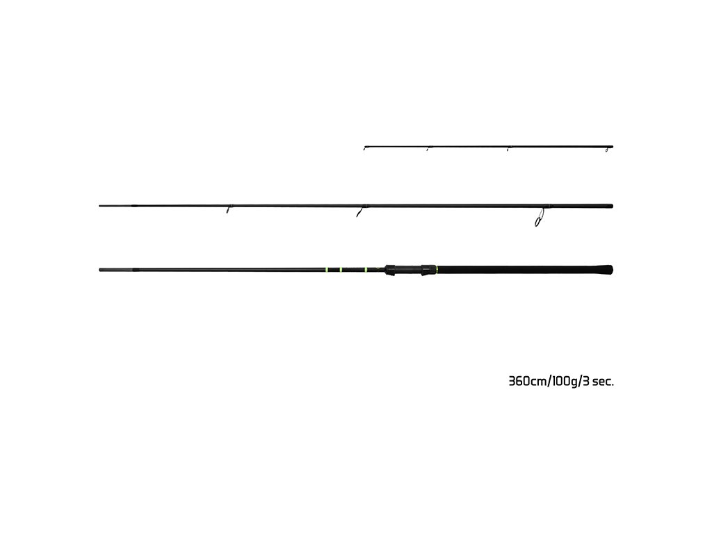 Štíhlý a lehký feederový prut, který nabízí vynikající poměr ceny a kvality. Navzdory své příznivé ceně může tento prut snadno konkurovat výrazně dražším modelům na trhu. Jedná se o univerzální univerzální feederový prut, postavený na vysoce kvalitním 24T uhlíku. Díky tomu blank získává dostatečnou sílu při nahazování i při zdolávání ryb. Prut má po celé délce jednopatkové pevné očko s elegantním černým vinutím, které je doplněno výraznou zelenou linií. Optimalizované rozložení oček přispívá k rovnoměrnému rozložení síly po celé délce prutu a k jeho lepšímu vyvážení. Černé DPS sedlo příjemně doplňuje tmavý design celého prutu, zatímco blank je matně černý s lakovaným segmentem, fluo zelenou omotávkou a 3K karbonovou strukturou nad sedlem. Rukojeť je celá z EVA pěny, špička je navíc originálně vyříznutá do hexagonálního tvaru. Prut je dodáván se dvěma sklolaminátovými špičkami s různou tvrdostí. Technické parametry Model: 300cm/100g Počet dílů: 3 + špičky Průměr blanku nad rukojetí: 11,1mm Počet oček (prut + špička): 6+6 Přepravní délka: 107cm Hmotnost: 152g Rukojeť: EVA pěna Délka rukojeti (od spodní části prutu ke středu sedla): 47cm Průměr špičky: 2,8 mm Model 330cm/100g Počet dílů: 3 + špičky Průměr blanku nad rukojetí: 11,7 mm Počet oček (prut + špička): 7+6 Přepravní délka: 112cm Hmotnost: 172g Rukojeť: EVA pěna Délka rukojeti (od spodní části prutu do středu sedla): 49cm Průměr špičky: 2,8 mm Model 360cm/100g Počet dílů: 3+hroty Průměr blanku nad rukojetí: 12mm Počet oček (prut + špička): 7+6 Přepravní délka: 126cm Hmotnost: 184g Rukojeť: EVA pěna Délka rukojeti (od spodní části prutu ke středu sedla): 51cm Průměr špičky: 2,8 mm