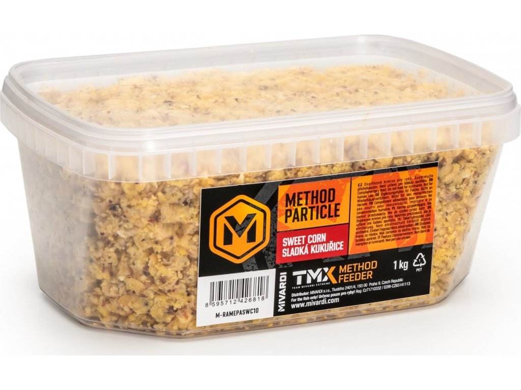 Pečlivě vyladěný mix prémiového drceného partiklu pro lov kaprovitých ryb. Jednotlivé druhy semen jsou vařeny v páře a následně drceny na směs s optimální zrnitostí a lepivostí. Tento nejšetrnější způsob tepelné úpravy zachovává přirozenou chuť a vůni. Při jeho použití je rovněž zachována i maximální atraktivita přírodních složek a nedochází ke ztrátě živin, jako je tomu při vaření ve vodě. Směs má mírně nakyslou chuť, způsobenou přidáním malého množství kyseliny mravenčí. Ta působí jako atraktor pro ryby a zároveň plní funkci šetrného přírodního konzervantu. Method partikl je dodáván v několika účinných příchutích a je plně připraven k použití. Díky své konzistenci výborně drží v krmítku. Po dopadu do vody okamžitě uvolňuje pro ryby neodolatelný mrak jemných částic. Velké množství hrubších kousků pak udržuje ryby delší dobu v lovném místě a napomáhá k selekci větších kusů. Tento partikl Mivardi neobsahuje glycerin, monopropylenglykol ani jiné podobné stabilizační látky, které obalují jednotlivá zrna a potlačují jejich přirozenou atraktivitu a zhoršují fungování v chladnější vodě.