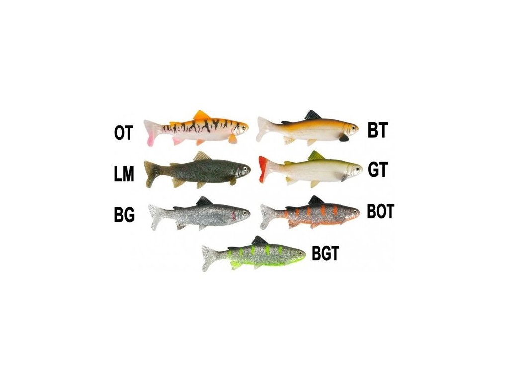 Gumová nástraha imitující pstruha. Je možné ji použít na vodách, kde se přirozeně vyskytují pstruzi. Zde působí tato nástraha na dravé ryby jako magnet.Je k dispozici v 7 barvách a 2 velikostech.- 15 cm / 50 g / 2ks – bal